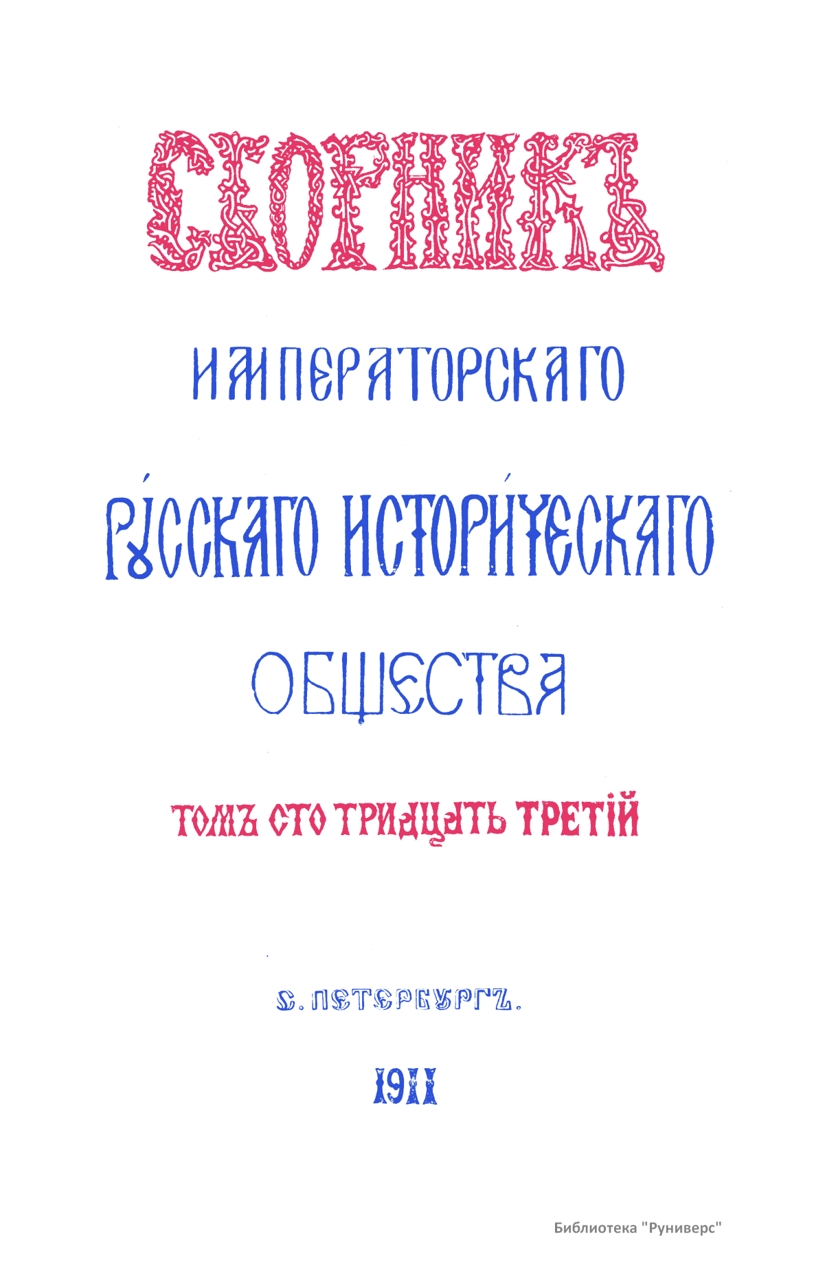 Сборникъ Русскаго историческаго общества. Томъ сто тридцать третiй