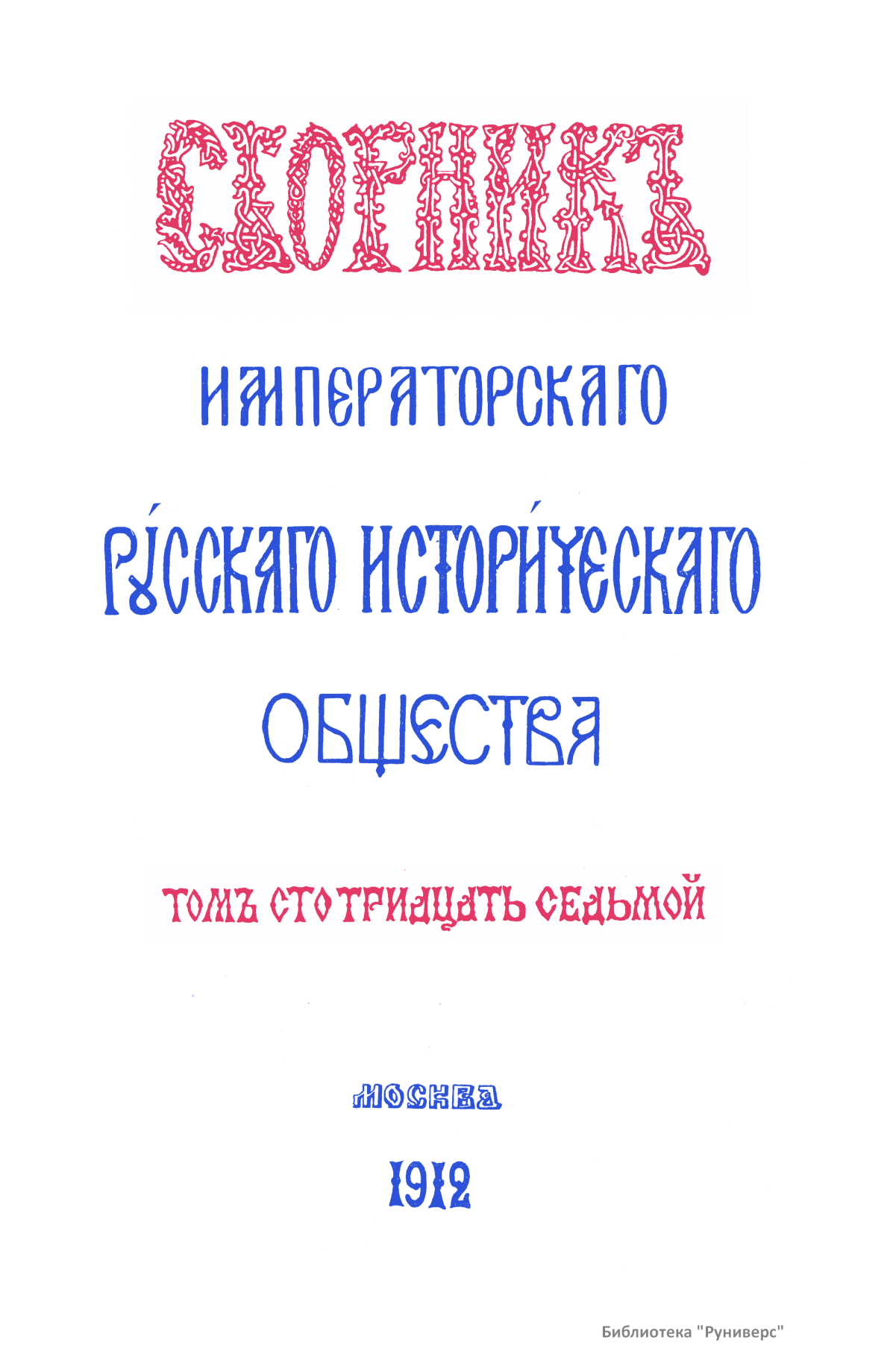 Сборникъ Русскаго историческаго общества. Томъ сто тридцать седьмой