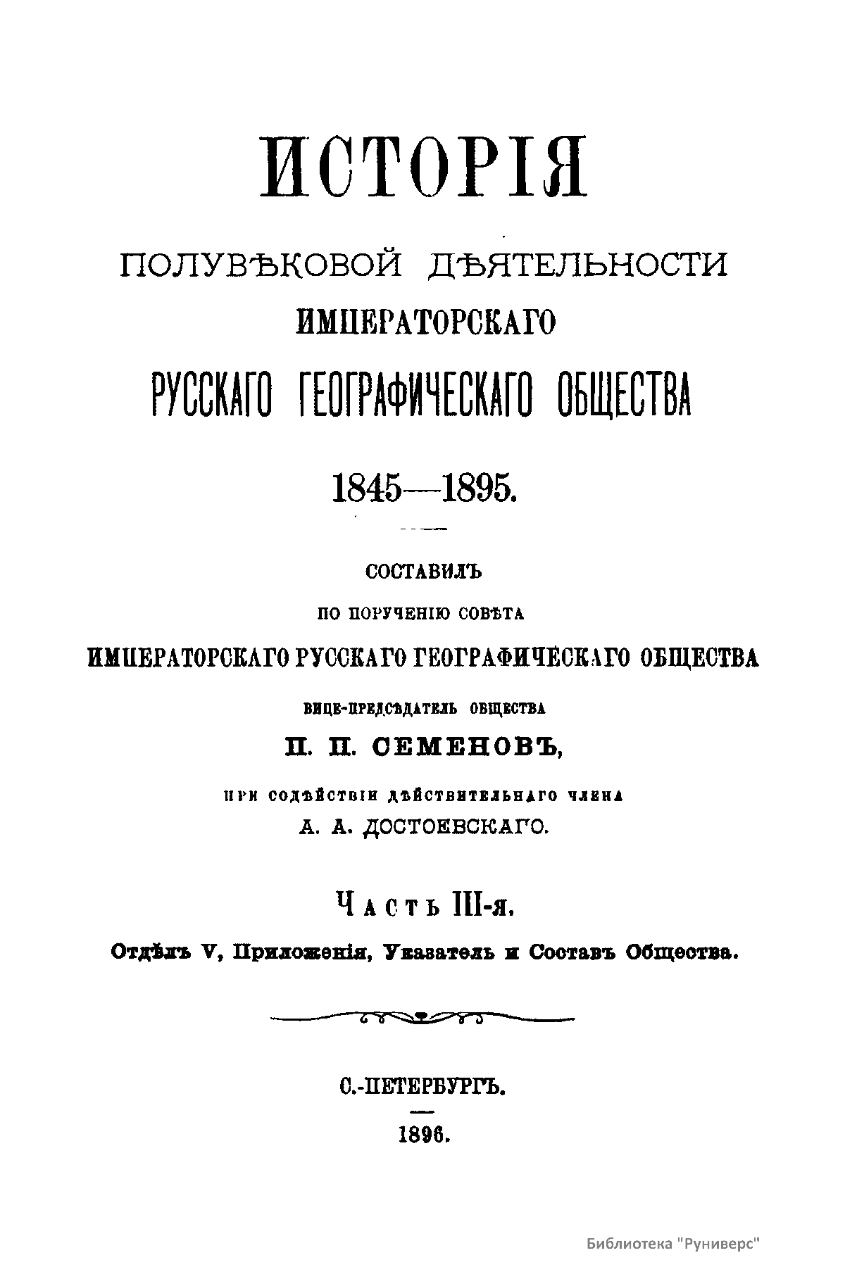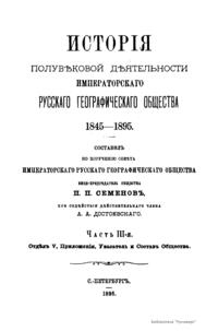Исторiя полувѣковой дѣятельности Императорскаго Русскаго Географическаго Общества 1845-1895. Часть III-я