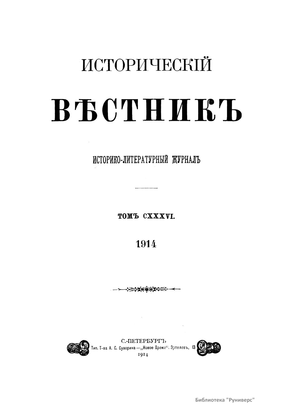 Исторический вестник. Историко-литературный журнал. Том CXXXVI