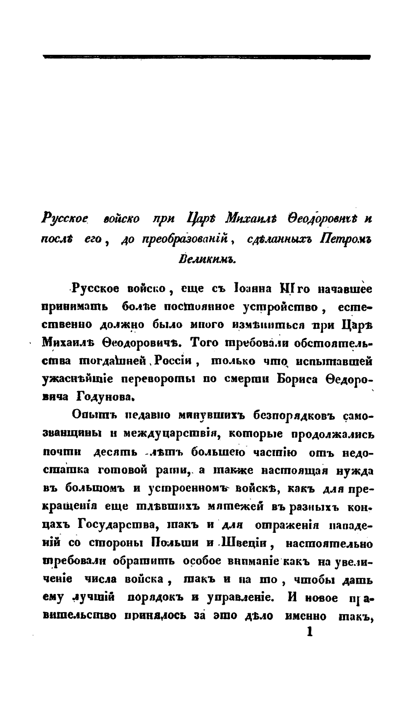 О русскомъ войскѣ въ царствованiе Михаила Ѳеодоровича и послѣ его, до преобразованiй, сдѣланных Петром Великимъ