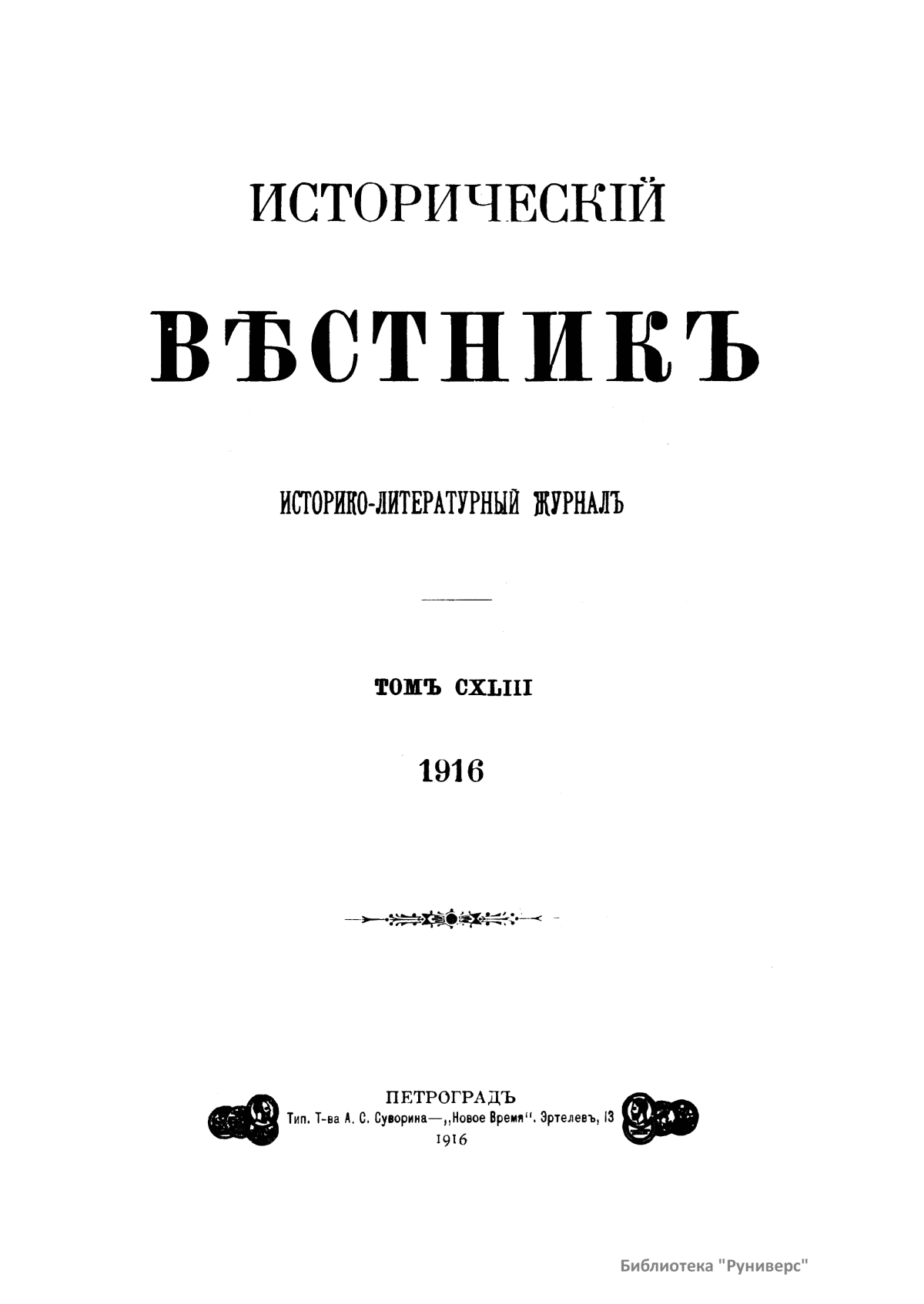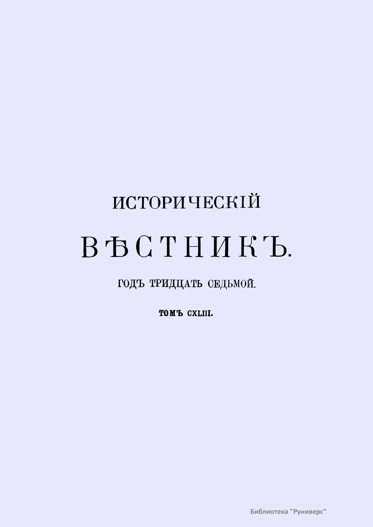 Исторический вестник. Историко-литературный журнал. Том CXLIII