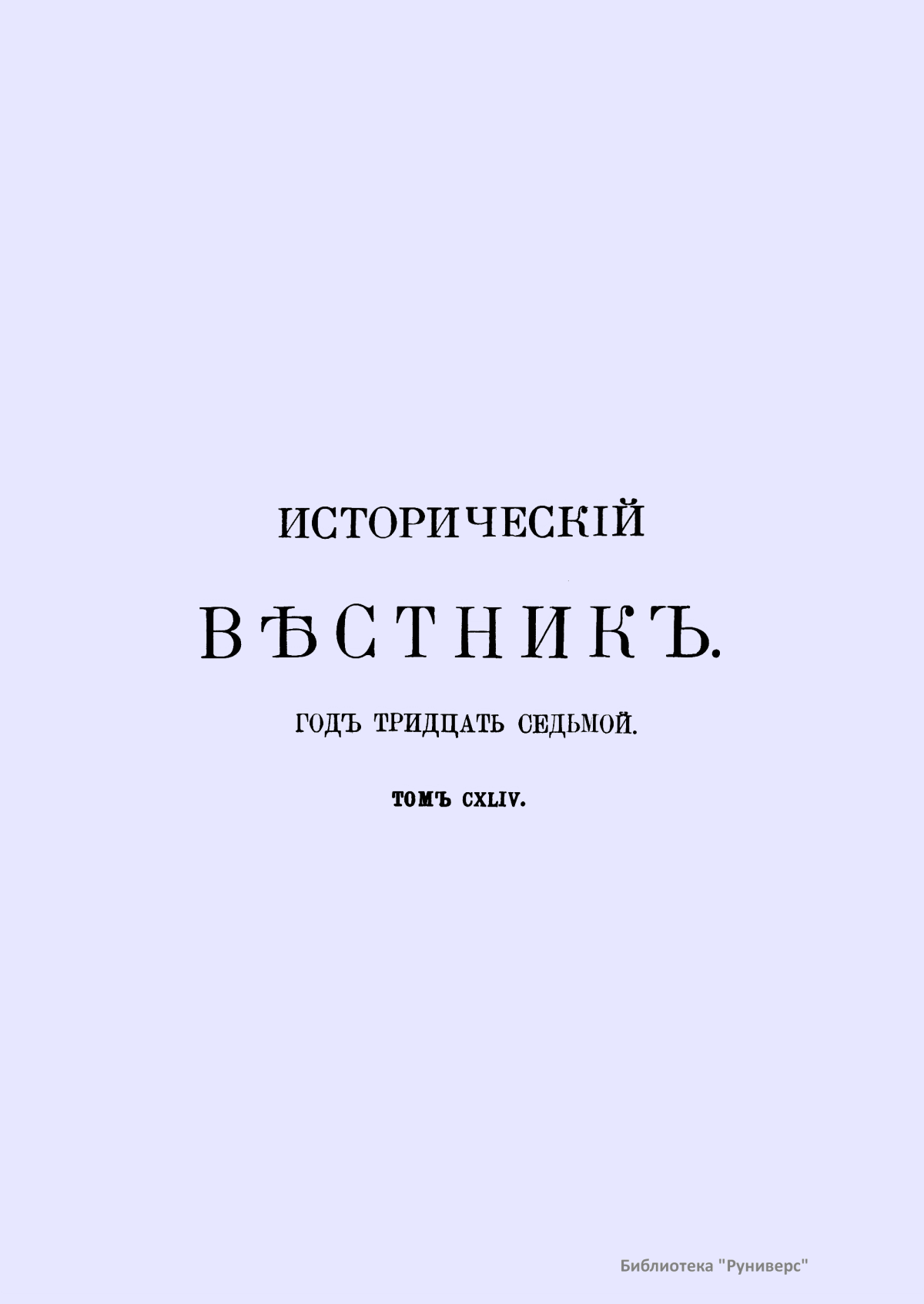 Исторический вестник. Историко-литературный журнал. Том CXLIV