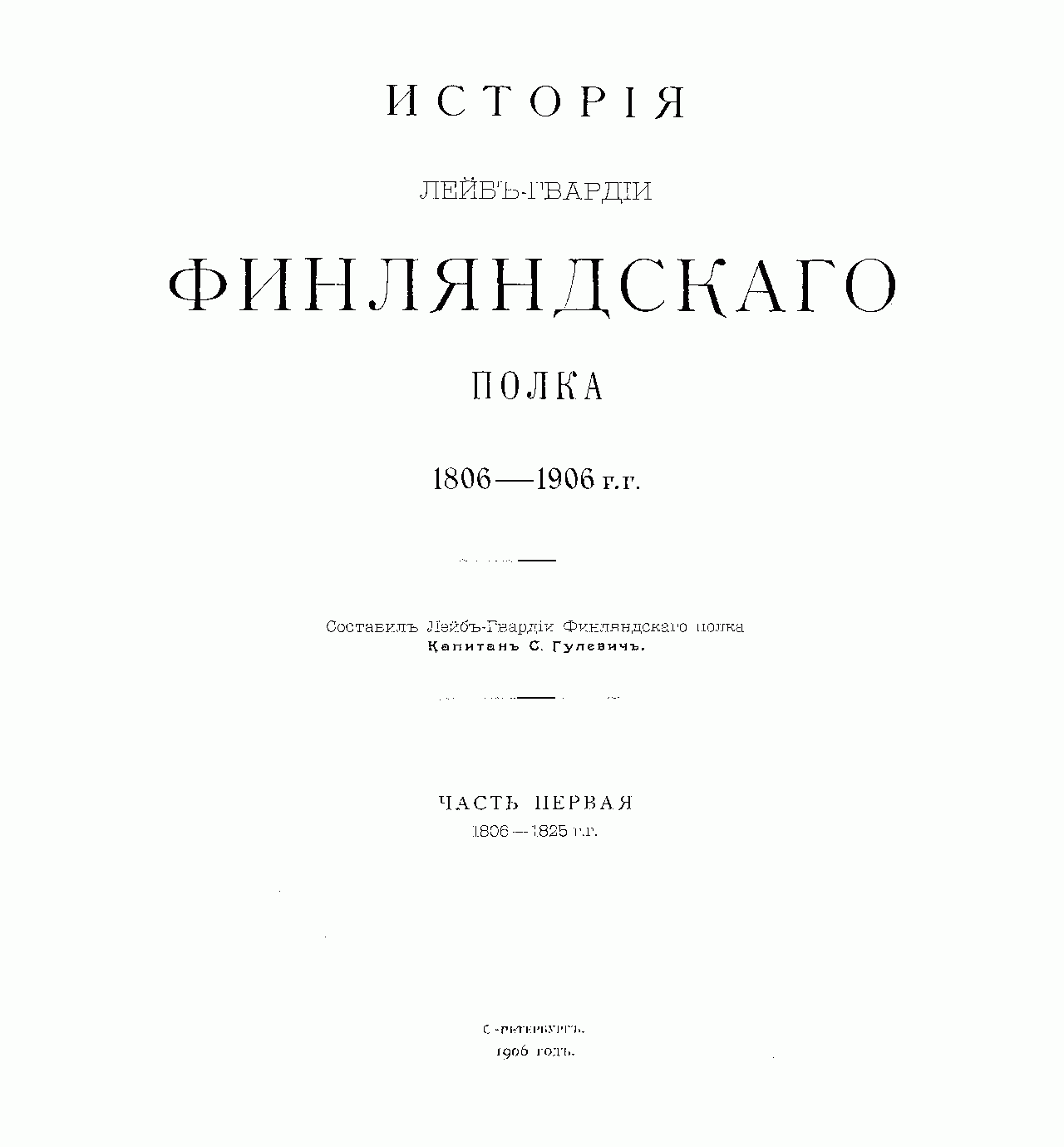 Исторiя Лейбъ-гвардiи Финляндскаго полка 1806-1906 г.г.