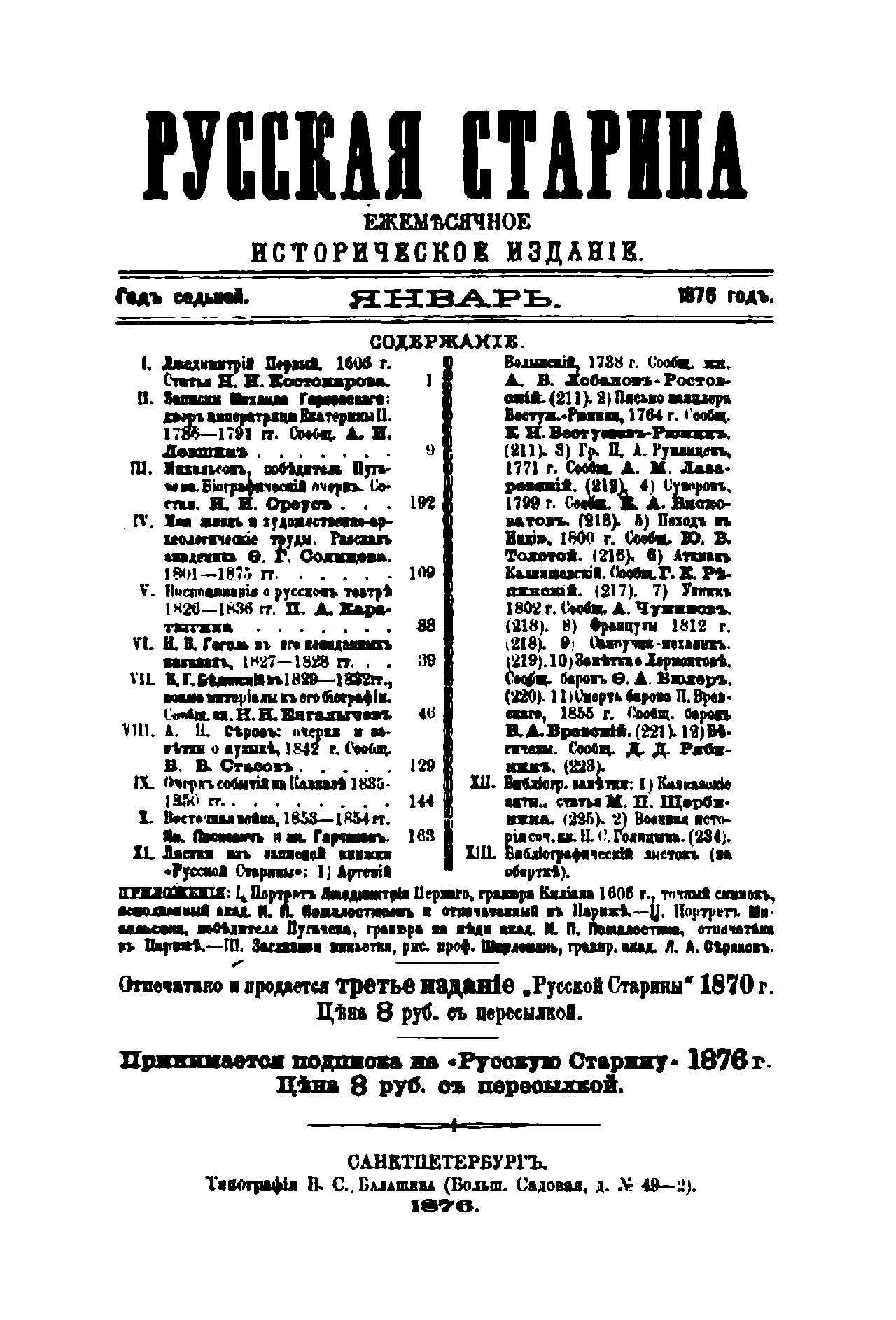 Русская старина. Том XV. 1876. Выпуски 1-4