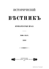 Исторический вестник. Историко-литературный журнал. Том CXLVI