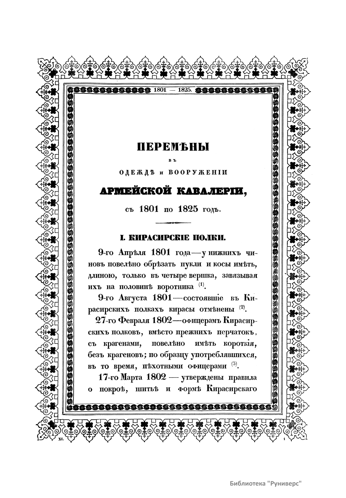 Историческое описанiе одежды и вооруженiя Россiйскихъ войскъ. Часть одиннадцатая