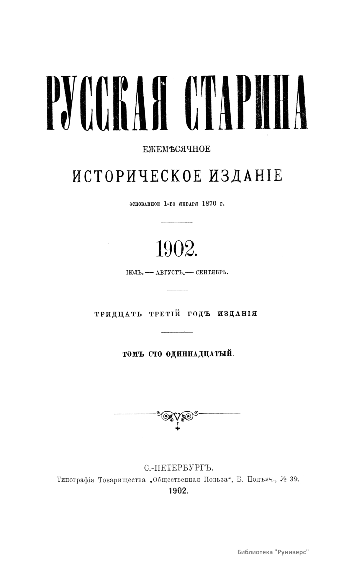 Русская старина. Томъ CXI. 1902. Выпуски 7-9