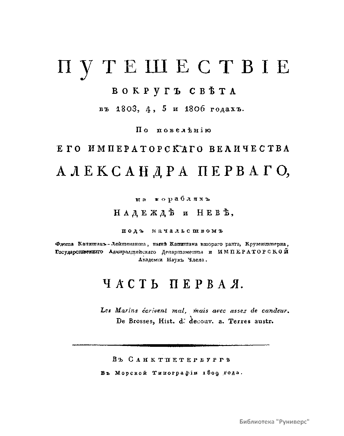 Путешествiе вокругъ свѣта въ 1803, 4, 5 и 1806 годахъ