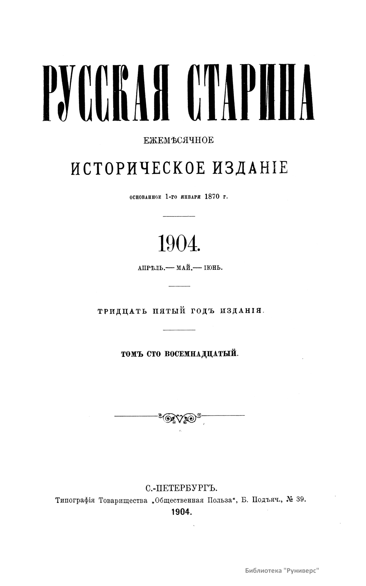Русская старина. Томъ CXVIII. 1904. Выпуски 4-6