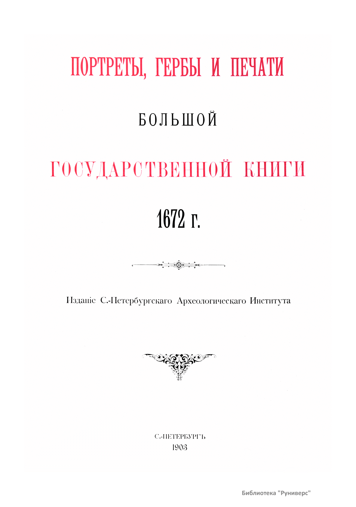 Портреты, гербы и печати большой государственной книги 1672 г.
