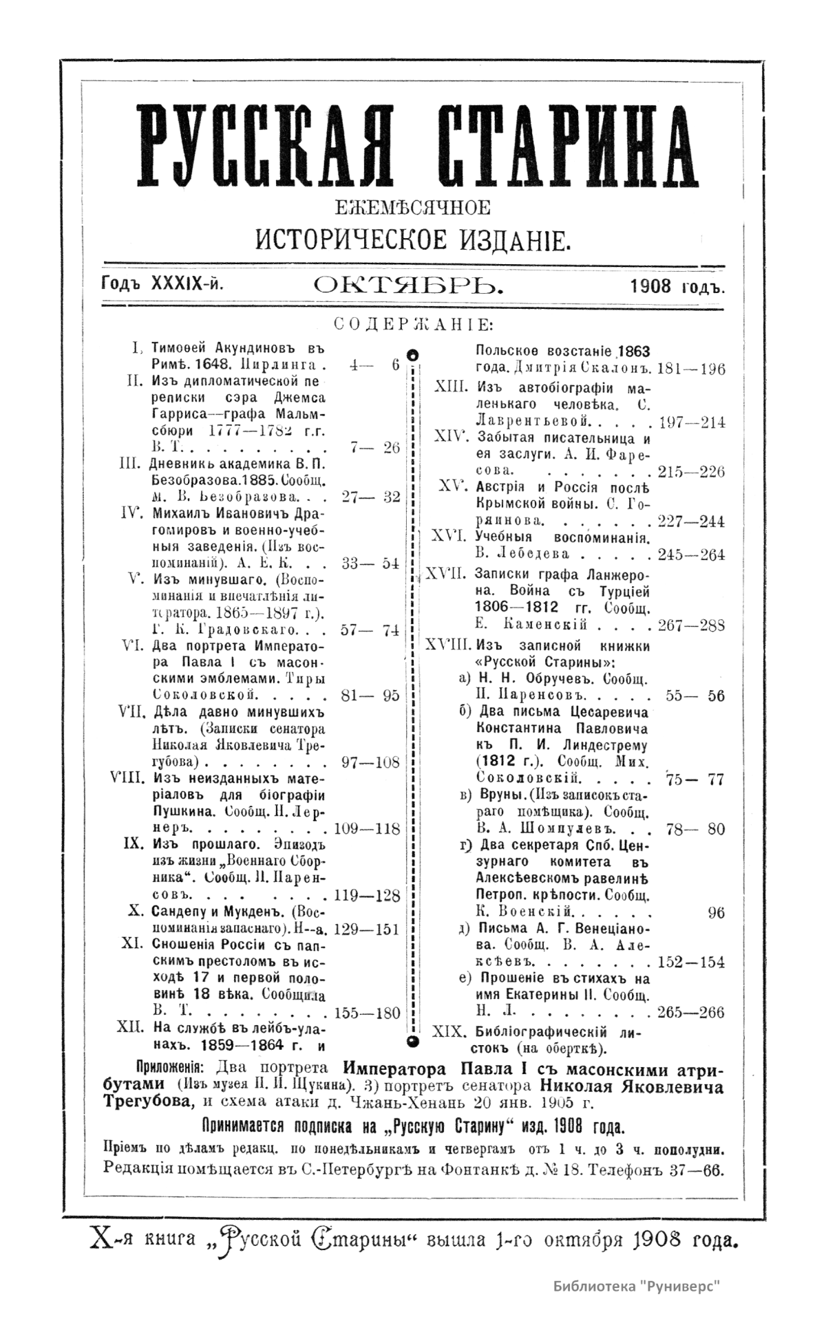 Русская старина. Томъ CXXXVI. 1908. Выпуски 10-12