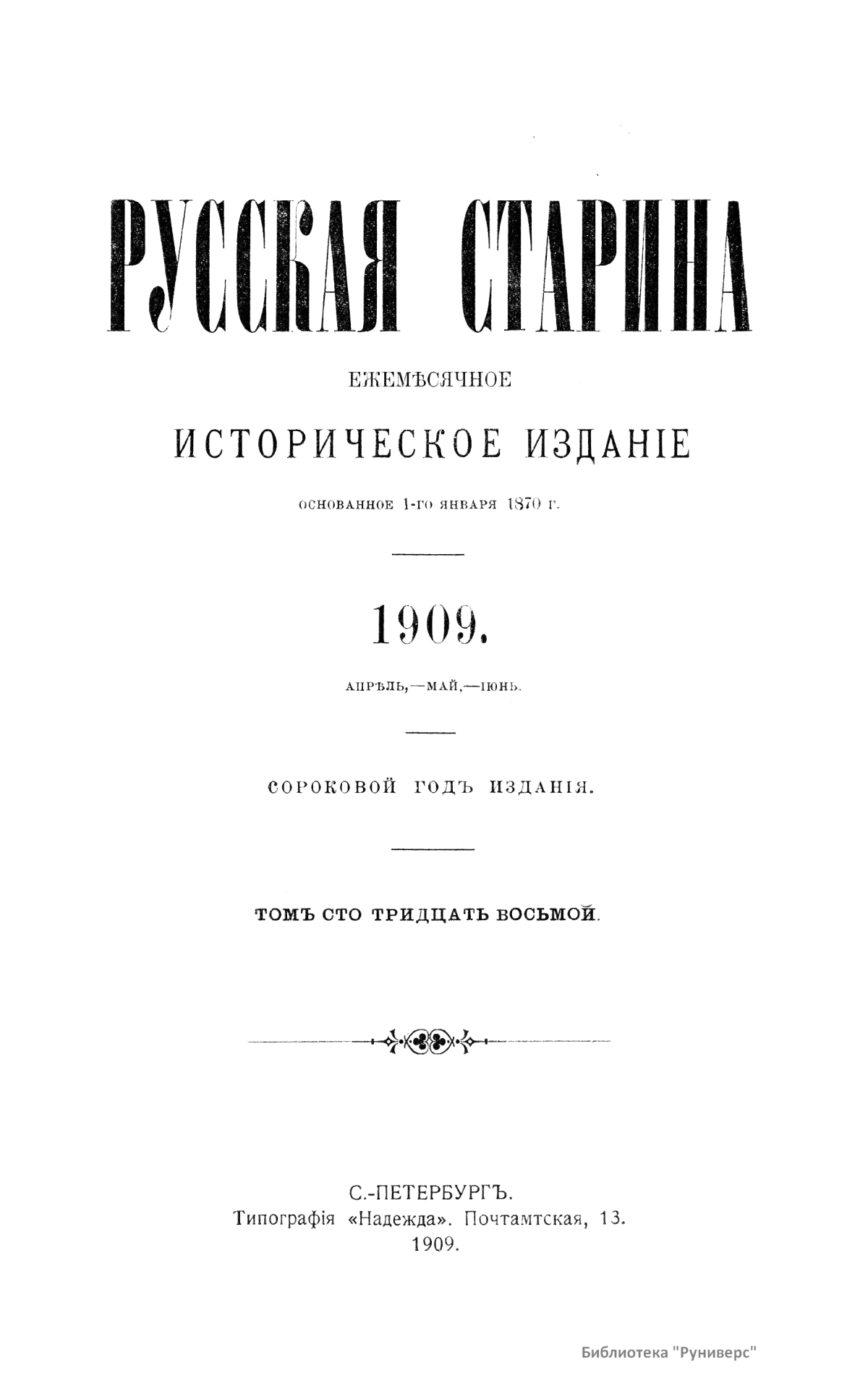 Русская старина. Томъ CXXXVIII. 1909. Выпуски 4-6