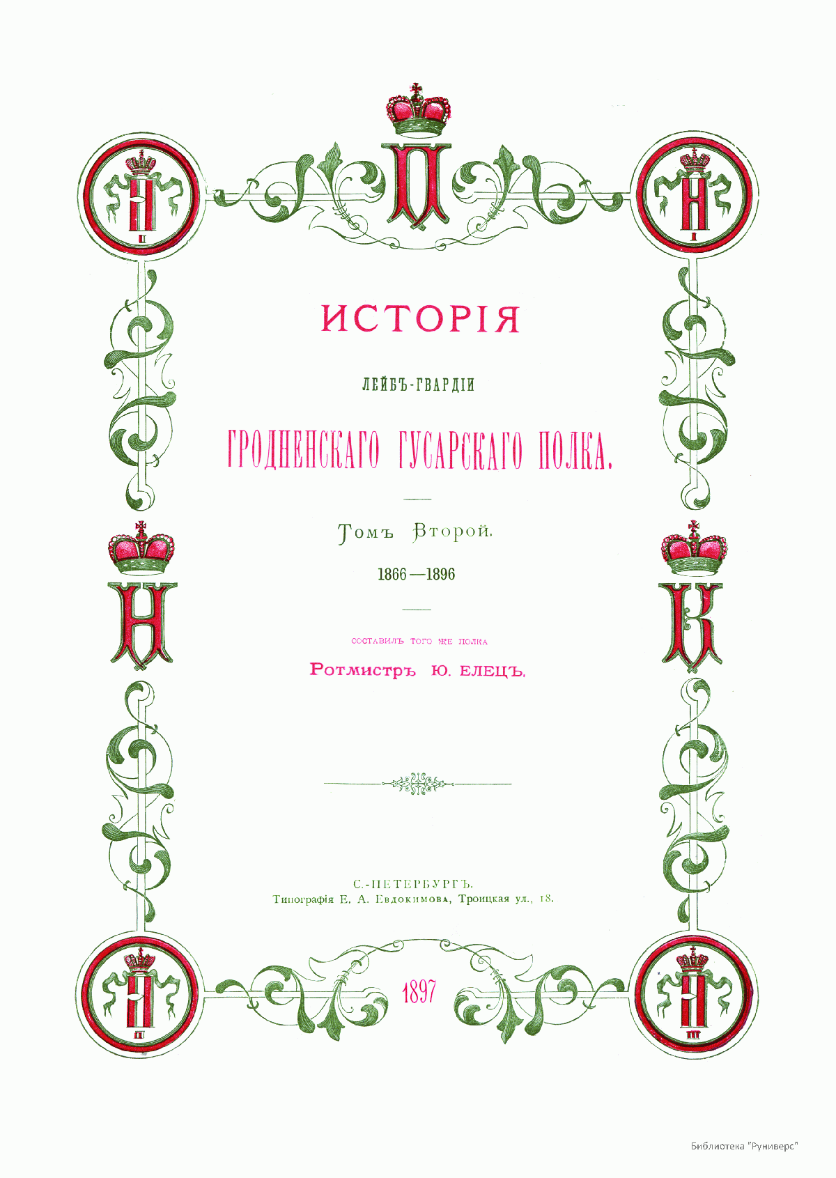 Исторiя Лейбъ-Гвардiи Гродненскаго Гусарскаго полка 1824–1896. Томъ II