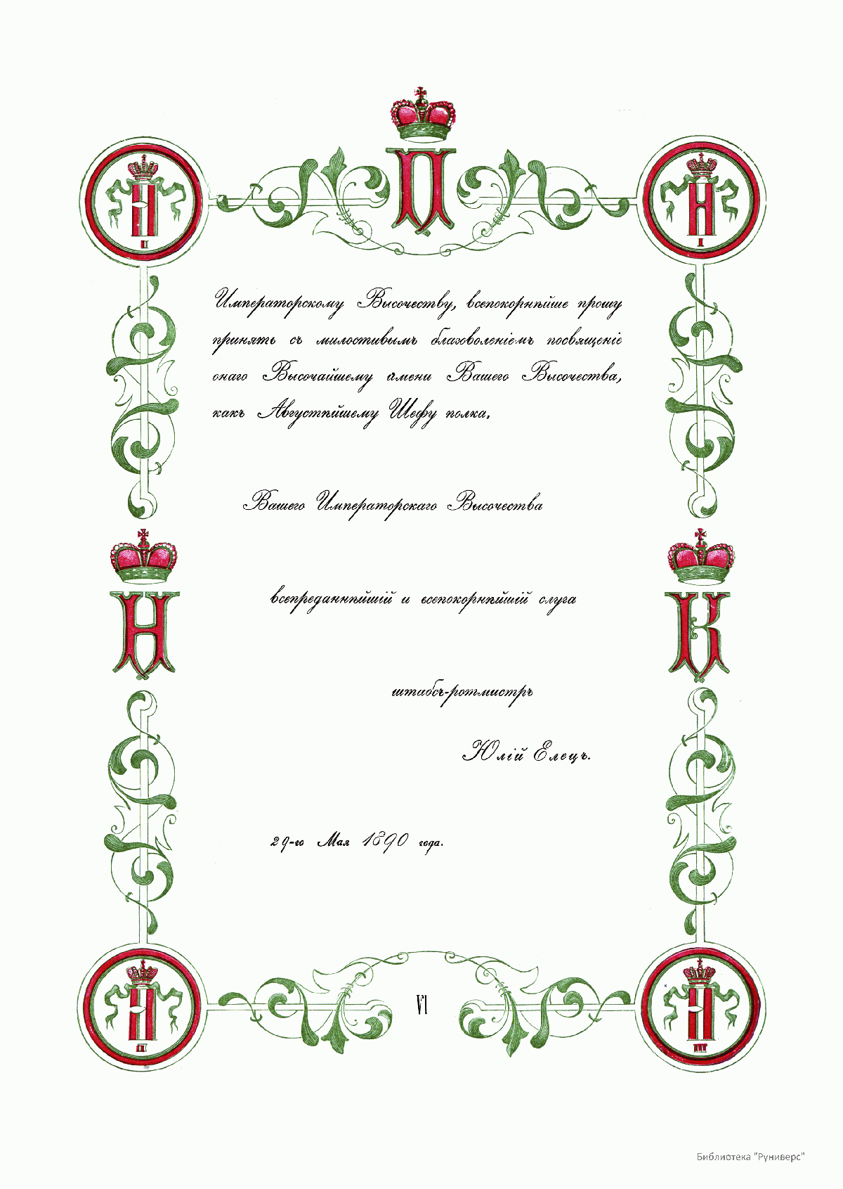 В 1890 году, «в виду приближения двадцатипятилетней годовщины незабвенного для Гродненских гусар дня» назначения шефом полка великого князя Павла Александровича, «полк возымел желание представить Августейшему Шефу свою историю», составление которой было поручено штабс-ротмистеру полка Юлию Лукиановичу Ельцу. В результате была выпущена двухтомная история полка: том первый – в 1890 году, том второй – в 1897 году.