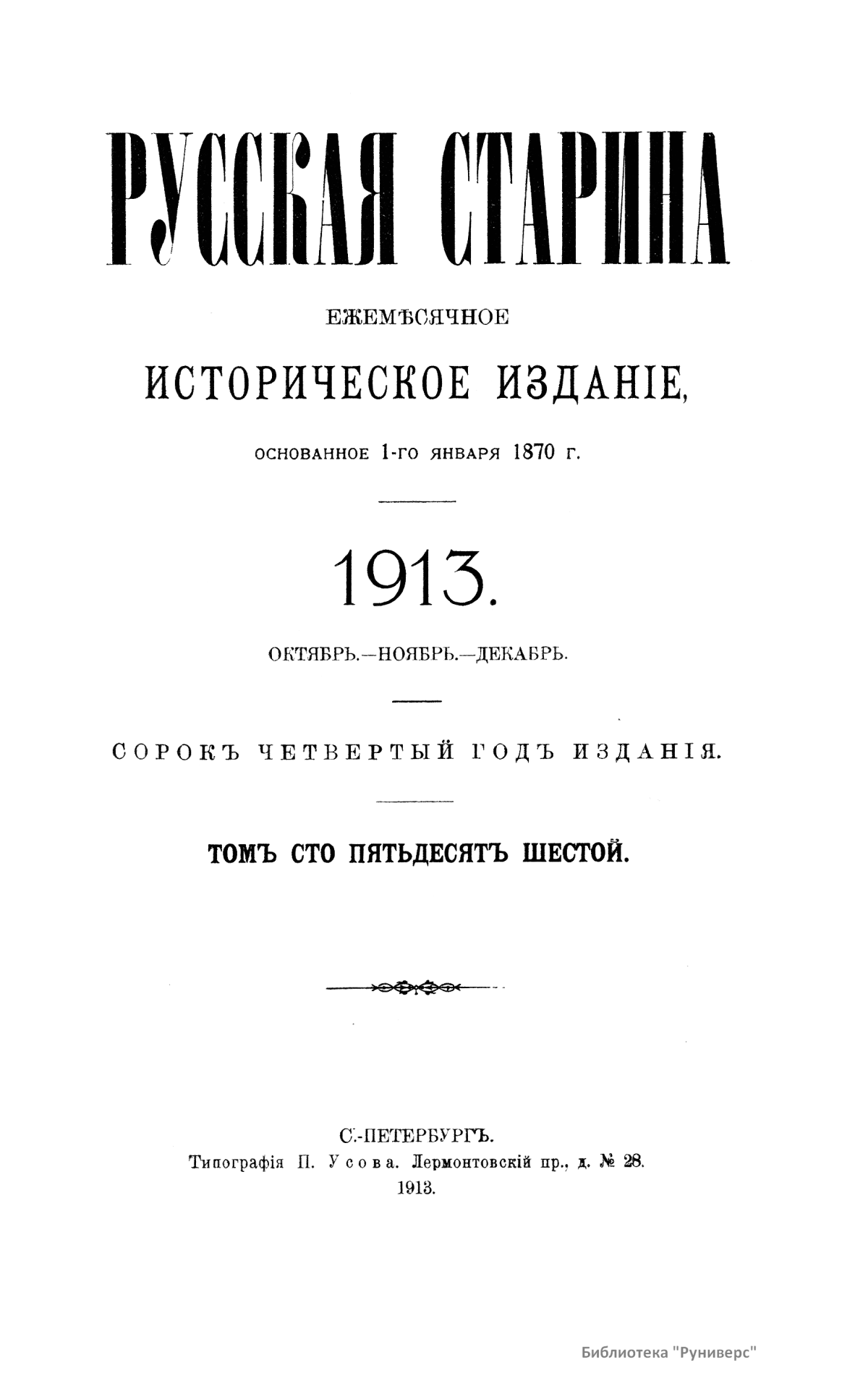 Русская старина. Томъ CLVI. 1913. Выпуски 10-12