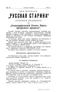 «Русская старина», ежемесячный исторический журнал, выходил в Петербурге в 1870-1918. Основан, издавался и редактировался (1870-1892) М. И. Семевским при участии В. И. Семевского. Последующими редакторами были Н. К. Шильдер (1892-1896), Н. Ф. Дубровин (1896-1904), военные историки С. П. Зыков, П. Н. Воронов.