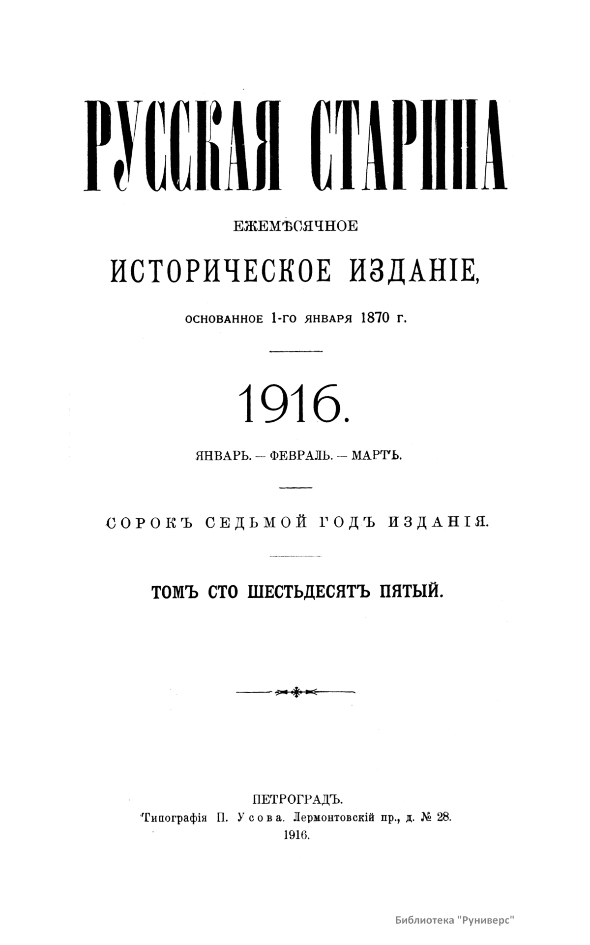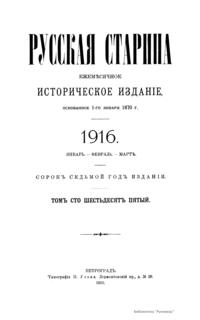 Русская старина. Том CLXV. 1916. Выпуски 1-3