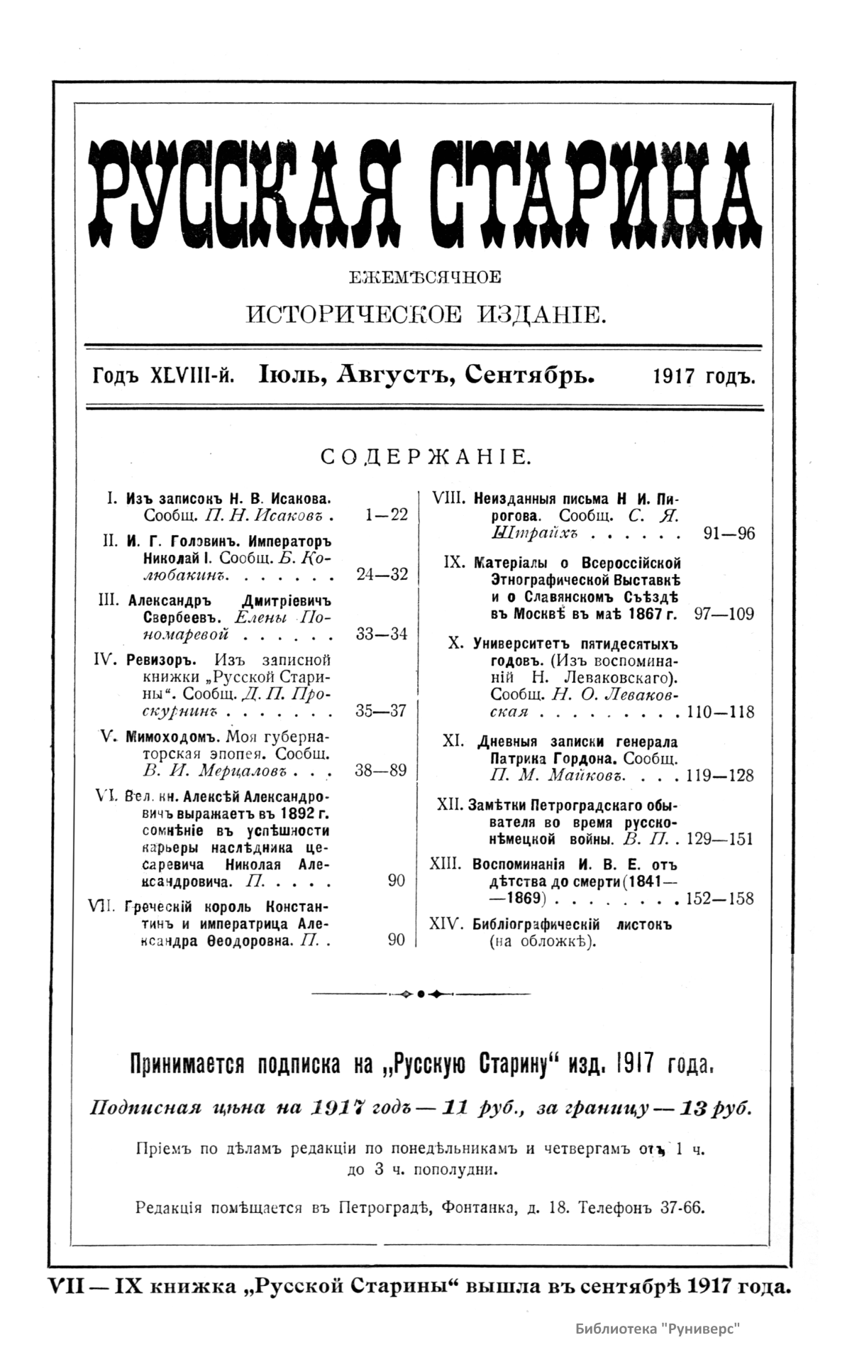 Русская старина. Томъ CLXXI. 1917. Выпуски 7-9