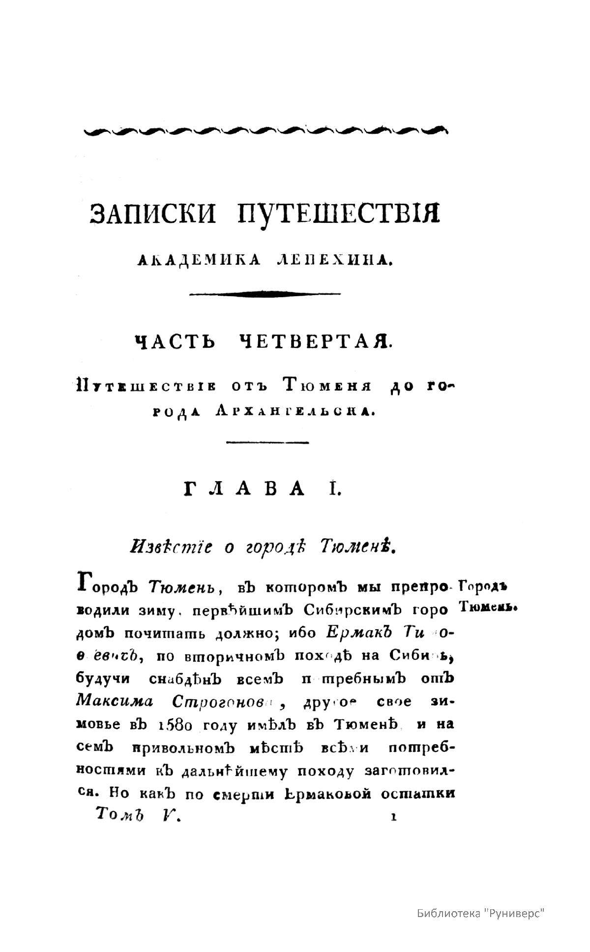 «Полное собрание ученых путешествий по России» вышло в свет по инициативе президента Санкт-Петербургской академии наук С. С. Уварова с целью обобщения и распространения основных сведений о России, полученных в результате экспедиций Академии наук, предпринятых в разные годы. В сочинение вошли следующие исследования: «Описание земли Камчатки» Степана Петровича Крашенинникова, ботаника и этнографа, участника Второй Камчатской экспедиции; «Записки путешествия академика Лепехина» (Иван Иванович Лепехин, естествоиспытатель и лексикограф, принимал участие во многих научных экспедициях по Уралу, Поволжью, Западной Сибири и Русскому Северу); «Записки путешествия академика Фалька» (Иоганн Петер Фальк, врач и естествоиспытатель, был начальником Оренбургской экспедиции, охватившей Сибирь и Алтай). Каждое исследование предваряет биография автора.