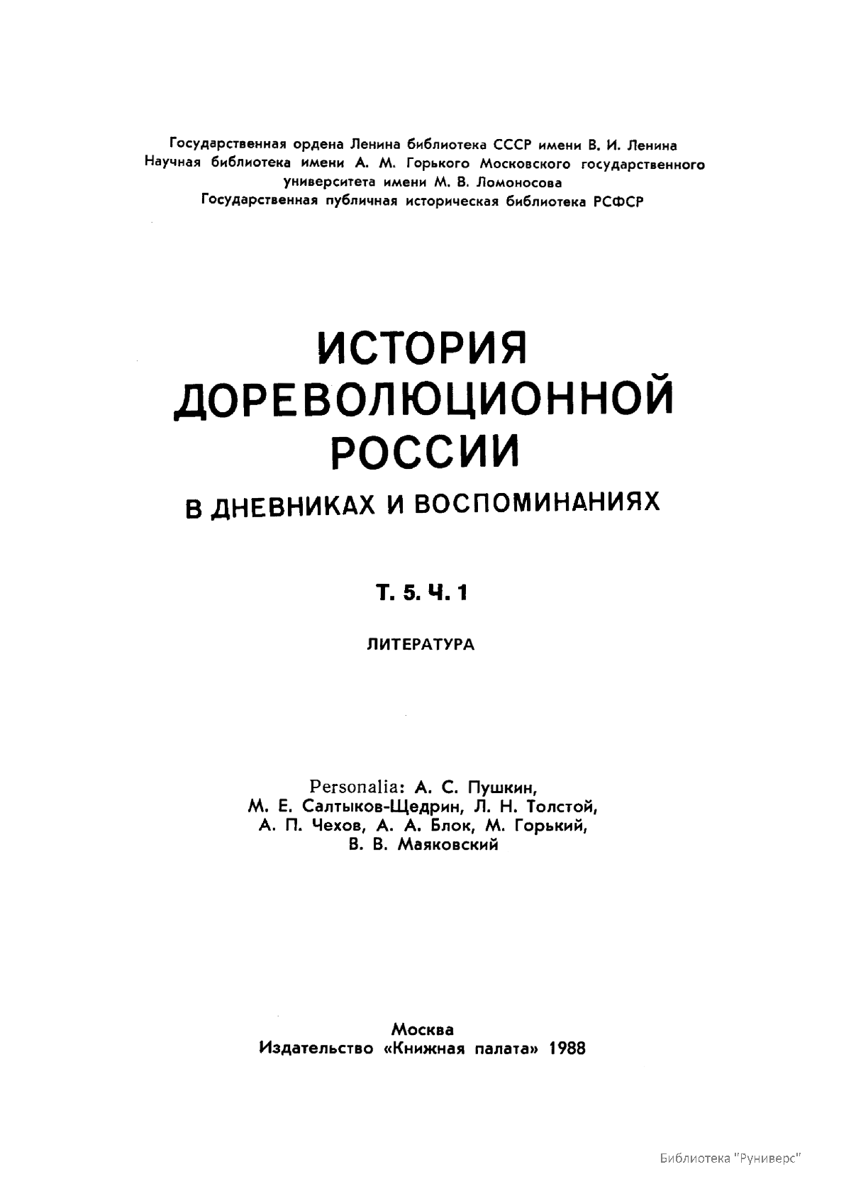 История дореволюционной России в дневниках и воспоминаниях. Т. 5. Ч. 1. Литература