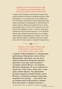 Лицевой летописный свод. XVI века — монументальный памятник древнерусского книжного искусства. На 10 тысячах листов с более чем 17 тысячами красочных миниатюр — «окон в историю» — представлена самая ранняя историческая и литературная энциклопедия. Лицевой свод дошел до наших дней в 10 томах, находящихся в разных древлехранилищах: БАН к РНБ в Санкт-Петербурге и ГИМ в Москве. Фирма «АКТЕОН» совместно с хранителями впервые осуществила научное факсимильное издание «Лицевой летописный свод XVI века». Предлагаемое издание с переводом — как дополнение в рамках научного аппарата вышеназванного факсимиле - представлено тремя разделами: библейская история, всемирная история, русская летописная история. В настоящем издании листы расположены в хронологическом порядке повествования На внешнем поле размещены транслитерация и перевод на современный русский язык. Русская летописная история 1114—1567 гг. — отражена на 6010 Лицевого летописного свода XVI века в следующих его томах: Г — Голицынский том (Отдел рукописей Российский национальной библиотеки, F.IV.225), Л — Лаптевский TOM (Отдел рукописей Российской национальной библиотеки, F.IV.233), O-I — Остермановский первый том (Отдел рукописей Библиотеки Академии наук, 31. 7. 30-1), O-II — Остермановский второй той (Отдел рукописей Библиотеки Академии наук, 31, 7. 30-2), Ш — Шумиловский том (Отдел рукописей Российской национальной библиотеки, F, IY. 232), С — Синодальный том (Отдел рукописей Государственного Исторического музея. Син. № 962), Ц— Царственная книга (Отдел рукописей Государственного Историческою музея. Син. № 149). В сносках отряжены разночтения с перепей ПСРЛ — Полным собранием русских летописей - фундаментальной для изучения истории древней и средневековой Руси книжной серией (её тексты, в основном, издавались наборно, в орфографии XIX века).