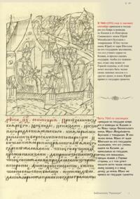 Лицевой летописный свод. XVI века — монументальный памятник древнерусского книжного искусства. На 10 тысячах листов с более чем 17 тысячами красочных миниатюр — «окон в историю» — представлена самая ранняя историческая и литературная энциклопедия. Лицевой свод дошел до наших дней в 10 томах, находящихся в разных древлехранилищах: БАН к РНБ в Санкт-Петербурге и ГИМ в Москве. Фирма «АКТЕОН» совместно с хранителями впервые осуществила научное факсимильное издание «Лицевой летописный свод XVI века». Предлагаемое издание с переводом — как дополнение в рамках научного аппарата вышеназванного факсимиле - представлено тремя разделами: библейская история, всемирная история, русская летописная история. В настоящем издании листы расположены в хронологическом порядке повествования На внешнем поле размещены транслитерация и перевод на современный русский язык. Русская летописная история 1114—1567 гг. — отражена на 6010 Лицевого летописного свода XVI века в следующих его томах: Г — Голицынский том (Отдел рукописей Российский национальной библиотеки, F.IV.225), Л — Лаптевский TOM (Отдел рукописей Российской национальной библиотеки, F.IV.233), O-I — Остермановский первый том (Отдел рукописей Библиотеки Академии наук, 31. 7. 30-1), O-II — Остермановский второй той (Отдел рукописей Библиотеки Академии наук, 31, 7. 30-2), Ш — Шумиловский том (Отдел рукописей Российской национальной библиотеки, F, IY. 232), С — Синодальный том (Отдел рукописей Государственного Исторического музея. Син. № 962), Ц— Царственная книга (Отдел рукописей Государственного Историческою музея. Син. № 149). В сносках отряжены разночтения с перепей ПСРЛ — Полным собранием русских летописей - фундаментальной для изучения истории древней и средневековой Руси книжной серией (её тексты, в основном, издавались наборно, в орфографии XIX века).