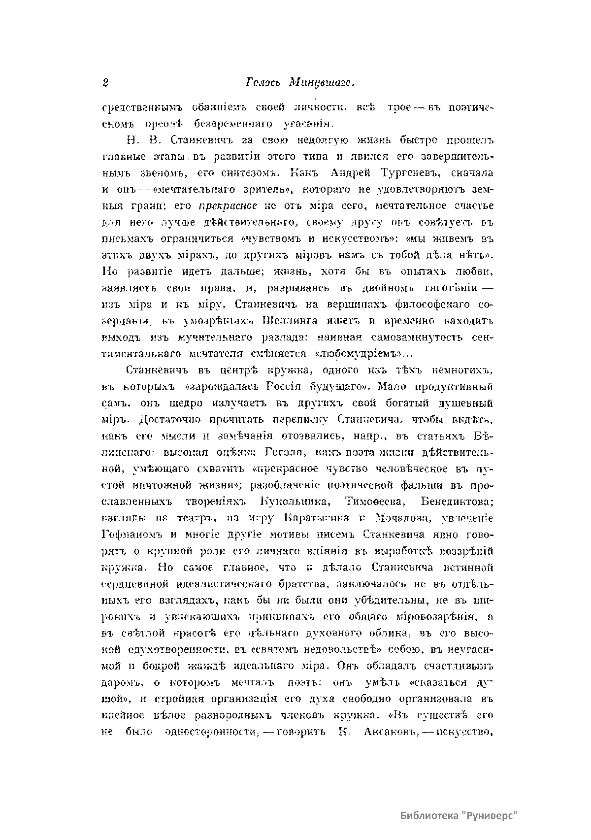 «Голос Минувшего» — журнал истории и истории литературы либерально-народнического направления, издававшийся в Москве с 1913 по 1923 год. Издателем журнала в 1913–1922 годах были известные русские историки, публицисты и общественные деятели С. П. Мельгунов (1880–1956) и В. И. Семевский (1848–1916). В редакционную коллегию также входили А. К. Дживелегов и П. Н. Сакулин. До 1919 «Голос минувшего» выходил ежемесячно, затем нерегулярно, всего было выпущено 65 номеров. В журнале публиковались интереснейшие материалы, посвященные истории литературы и общественных движений в России второй половины XVIII – начала XX веков. Здесь можно найти: статьи по вопросам русской и всеобщей истории, истории литературы, философии, искусства и археологии. В издании представлены: историческая беллетристика, биографии русских и иностранных деятелей, критика и библиография, новости русской и иностранной науки, обзор журналов русских и иностранных, хроника, мемуары, записки, дневники и письма декабристов, видных народовольцев и эсеров, крупных общественных деятелей и царских администраторов, писателей, военачальников и др. Среди авторов: Е. В. Тарле, А. Ф. Кони, А. К. Дживелегов, А. А. Кизеветтер, В. Г. Короленко и др. Стремление сделать журнал интересным для более широкого круга читателей способствовало тому, что в «Голосе Минувшего», хоть и в ограниченном количестве, печатались статьи по истории искусства и помещались иллюстрации: портреты, картины и рисунки, не знакомые или мало знакомые публике. В журнале опубликован целый ряд интересных писем, документов и воспоминаний. Абсолютное большинство текстов никогда не переиздавалось. Журнал снабжен указателями имен за 1913–1922 годы и систематическим указателем содержания.