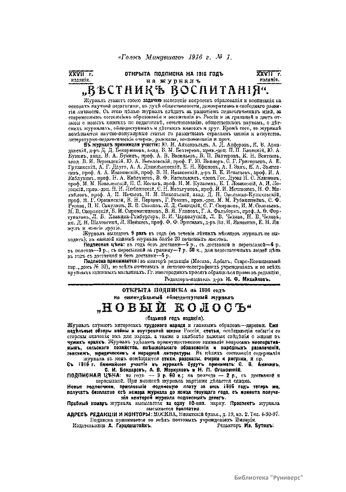 Голос минувшего. 1916. 1. Январь