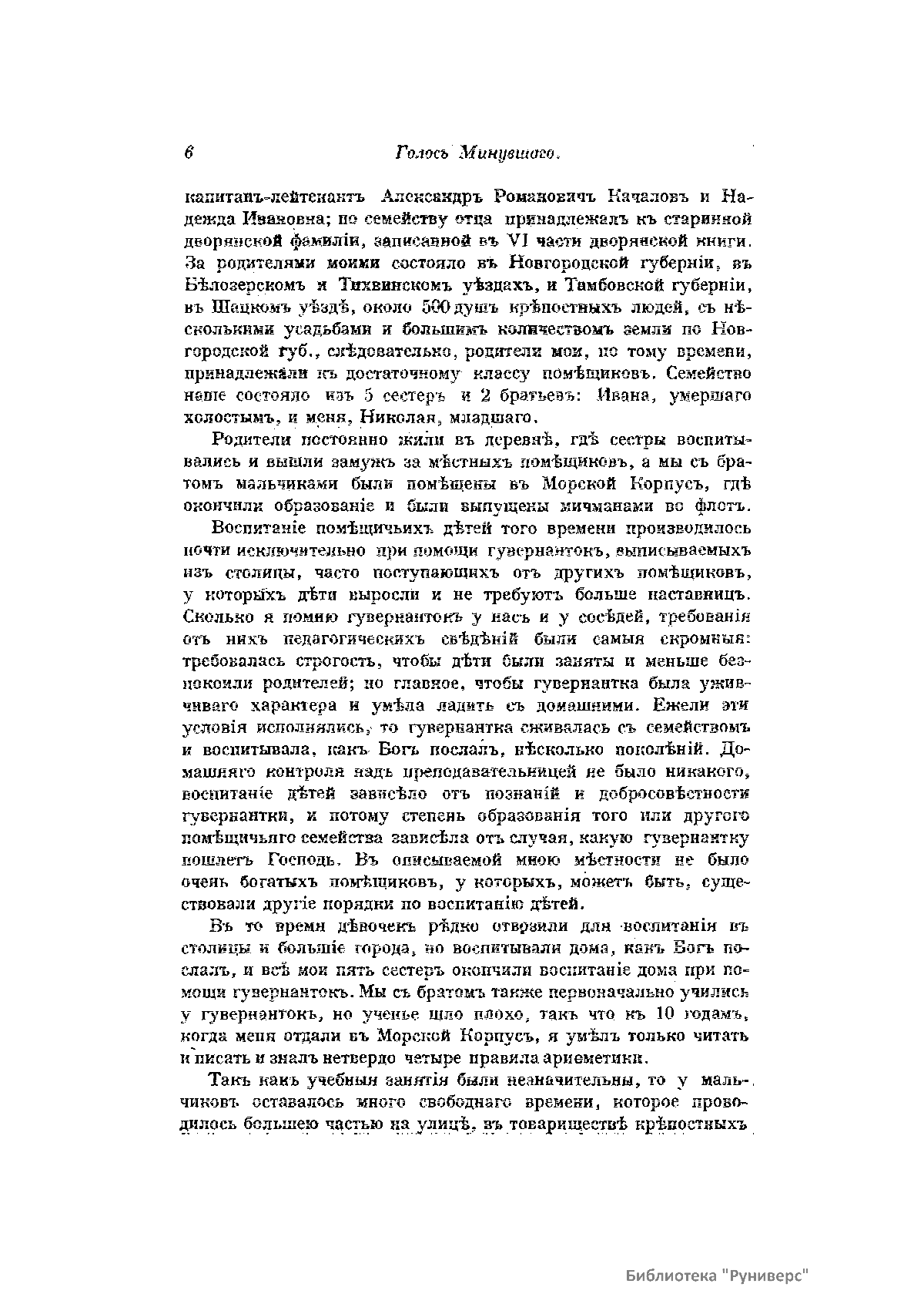 «Голос Минувшего» — журнал истории и истории литературы либерально-народнического направления, издававшийся в Москве с 1913 по 1923 год. Издателем журнала в 1913–1922 годах были известные русские историки, публицисты и общественные деятели С. П. Мельгунов (1880–1956) и В. И. Семевский (1848–1916). В редакционную коллегию также входили А. К. Дживелегов и П. Н. Сакулин. До 1919 «Голос минувшего» выходил ежемесячно, затем нерегулярно, всего было выпущено 65 номеров. В журнале публиковались интереснейшие материалы, посвященные истории литературы и общественных движений в России второй половины XVIII – начала XX веков. Здесь можно найти: статьи по вопросам русской и всеобщей истории, истории литературы, философии, искусства и археологии. В издании представлены: историческая беллетристика, биографии русских и иностранных деятелей, критика и библиография, новости русской и иностранной науки, обзор журналов русских и иностранных, хроника, мемуары, записки, дневники и письма декабристов, видных народовольцев и эсеров, крупных общественных деятелей и царских администраторов, писателей, военачальников и др. Среди авторов: Е. В. Тарле, А. Ф. Кони, А. К. Дживелегов, А. А. Кизеветтер, В. Г. Короленко и др. Стремление сделать журнал интересным для более широкого круга читателей способствовало тому, что в «Голосе Минувшего», хоть и в ограниченном количестве, печатались статьи по истории искусства и помещались иллюстрации: портреты, картины и рисунки, не знакомые или мало знакомые публике. В журнале опубликован целый ряд интересных писем, документов и воспоминаний. Абсолютное большинство текстов никогда не переиздавалось. Журнал снабжен указателями имен за 1913–1922 годы и систематическим указателем содержания.