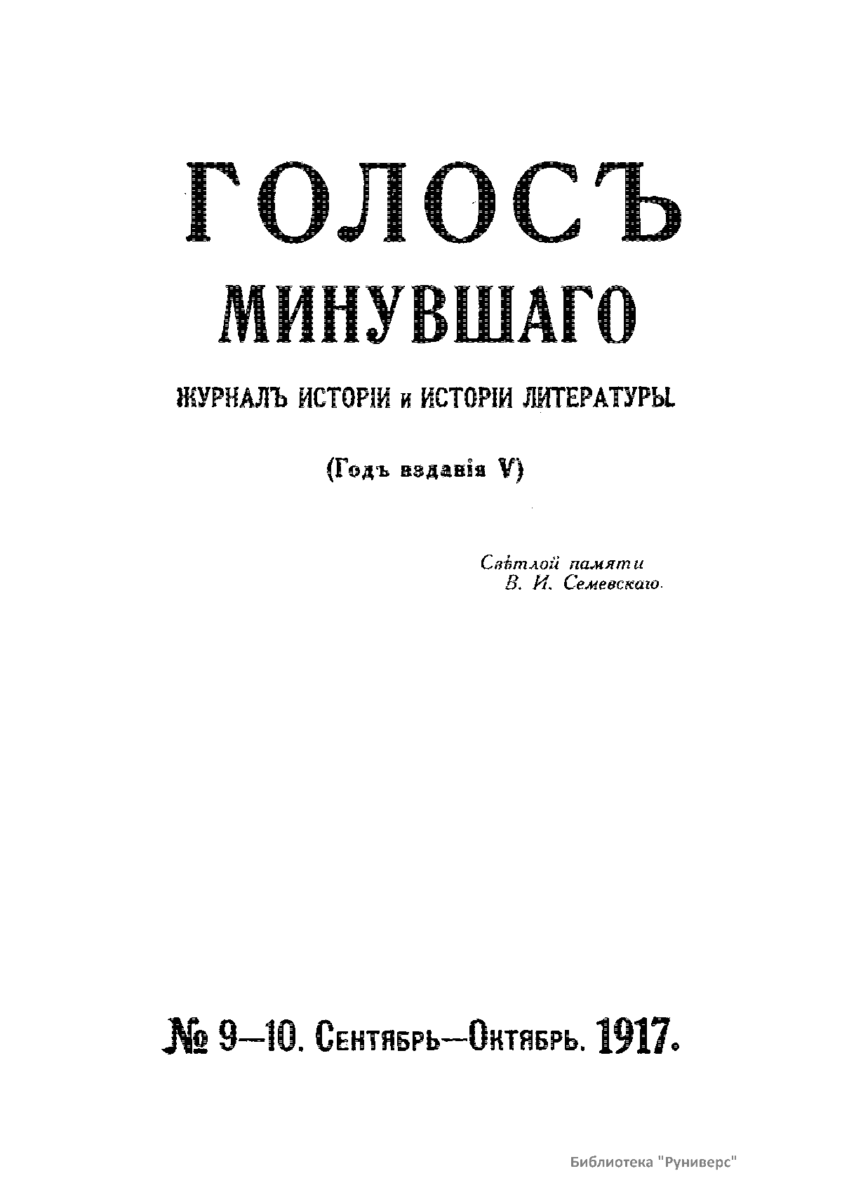 Голосъ минувшаго. 1917. 9-10. Сентябрь-Октябрь