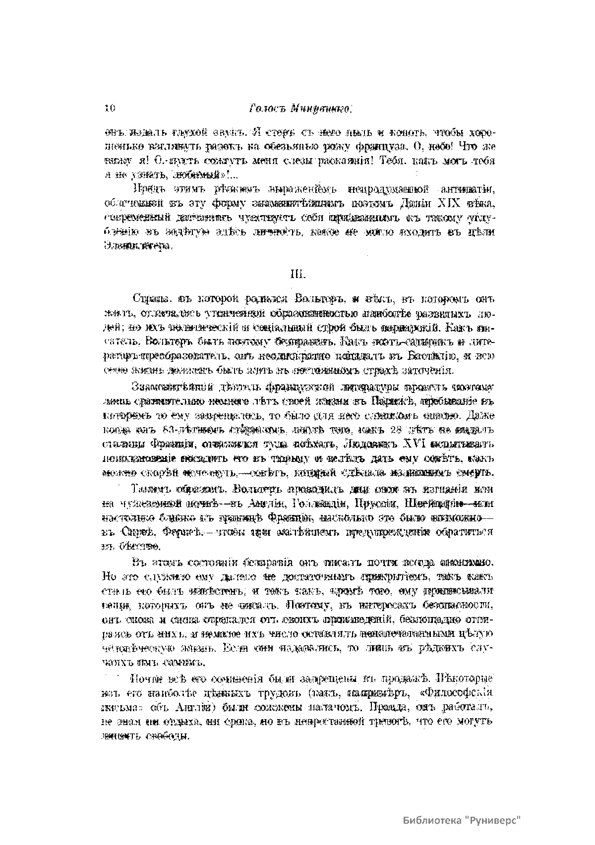 «Голос Минувшего» — журнал истории и истории литературы либерально-народнического направления, издававшийся в Москве с 1913 по 1923 год. Издателем журнала в 1913–1922 годах были известные русские историки, публицисты и общественные деятели С. П. Мельгунов (1880–1956) и В. И. Семевский (1848–1916). В редакционную коллегию также входили А. К. Дживелегов и П. Н. Сакулин. До 1919 «Голос минувшего» выходил ежемесячно, затем нерегулярно, всего было выпущено 65 номеров. В журнале публиковались интереснейшие материалы, посвященные истории литературы и общественных движений в России второй половины XVIII – начала XX веков. Здесь можно найти: статьи по вопросам русской и всеобщей истории, истории литературы, философии, искусства и археологии. В издании представлены: историческая беллетристика, биографии русских и иностранных деятелей, критика и библиография, новости русской и иностранной науки, обзор журналов русских и иностранных, хроника, мемуары, записки, дневники и письма декабристов, видных народовольцев и эсеров, крупных общественных деятелей и царских администраторов, писателей, военачальников и др. Среди авторов: Е. В. Тарле, А. Ф. Кони, А. К. Дживелегов, А. А. Кизеветтер, В. Г. Короленко и др. Стремление сделать журнал интересным для более широкого круга читателей способствовало тому, что в «Голосе Минувшего», хоть и в ограниченном количестве, печатались статьи по истории искусства и помещались иллюстрации: портреты, картины и рисунки, не знакомые или мало знакомые публике. В журнале опубликован целый ряд интересных писем, документов и воспоминаний. Абсолютное большинство текстов никогда не переиздавалось. Журнал снабжен указателями имен за 1913–1922 годы и систематическим указателем содержания.
