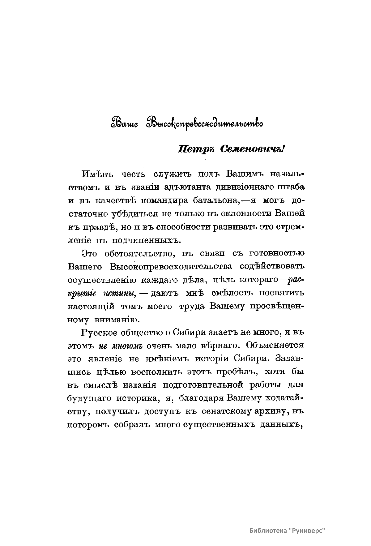» с тем, чтобы продолжать эту работу впредь. После этого изменил название четвертого и пятого тома, которые стали соответственно первой и второй частью сочинения «Сибирь в царствование императрицы Екатерины II». Данное исследование, представляющее собой собрание материалов по истории Сибири (главным образом это выписки из «Полного собрания законов», а также выборка документов из сенатского архива), в свое время стало видным явлением в историографии Сибири и не утратило своего исторического значения до сих пор.