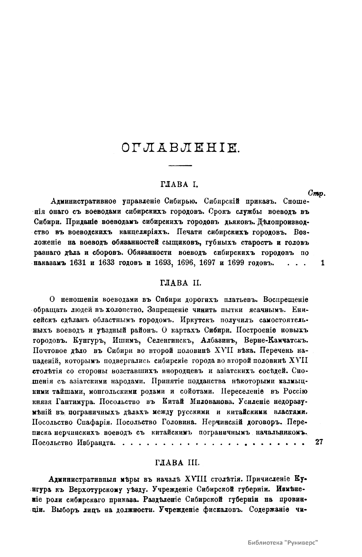 Первая часть основана в большей части на трудах немецких исследователей Сибири Г. Ф. Миллера и И. Э. Фишера и посвящена событиям XVI–XVII веков, вторая часть иллюстрирует историю Сибири конца XVII – середины XVIII веков. Особое внимание в своем исследовании автор уделяет освоению новых территорий, строительству городов и крепостей, анализу администрации и мер по укреплению социальной и военной структуры в этом регионе. Также в работе изложен обширный материал о развитии ратного дела, местных промыслов, торговли, культурной и религиозной жизни Сибири.
