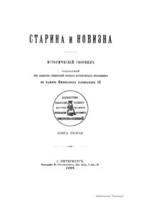 «Старина и новизна» — русский исторический сборник, издававшийся «Обществом ревнителей русского исторического просвещения в память императора Александра III». Сборник выходил в Петербурге в 1897–1904 и в Москве в 1904–1917 годах по мере накопления материала. Руководил изданием сборника граф С. Д. Шереметев (1844–1918) — историк, археолог, председатель «Общества», одного из первых объединений историков монархического направления. Члены общества способствовали изданию документов прошлого, содействуя развитию исторической науки и популяризации интереса к историческим материалам. «Старина и новизна» представляет собой собрание документальных материалов по русской истории и литературе XVII–XIX века. Вместе с Шереметевым в создании сборника участвовали блестящие историки А. П. и Н. П. Барсуковы, С. Ф. Платонов, Л. П. Майков и др.