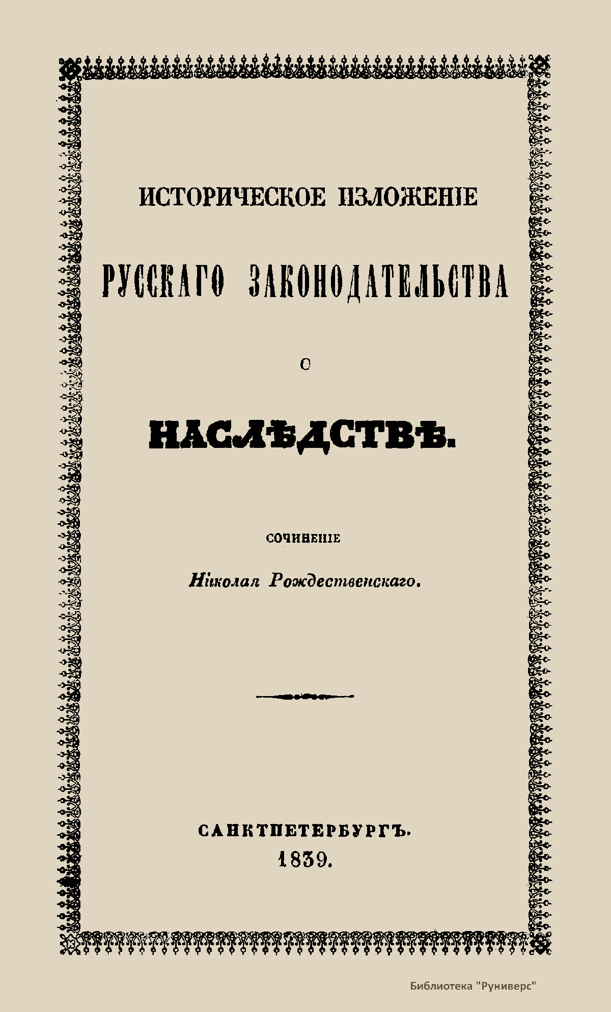 Историческое изложенiе русскаго законодательства о наслѣдствѣ