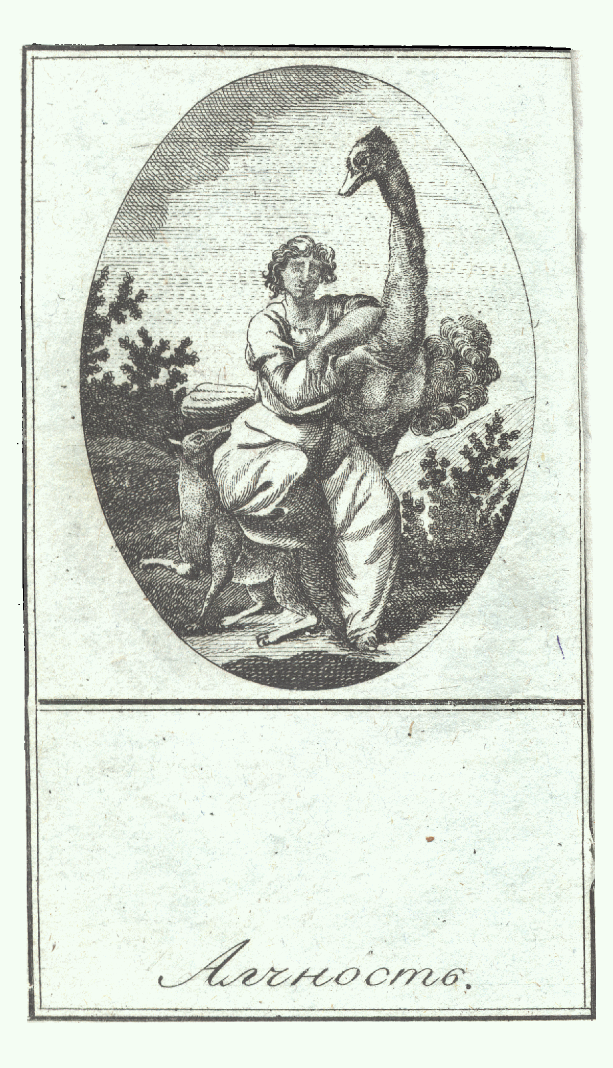 Литература для детей и юношества конца XVIII – начала XIX веков в большинстве своем назидательна и поучительна. Символы и эмблемы – часть дворянской культуры XVIII века. Вот и для детей создается изящная книжечка с эмблемами, «полезными и занимательными», что отражает воспитательно-нравственную функцию детского чтения той эпохи. В книге представлены двадцать шесть эмблем, в них через образы выражены добродетели, которым дети должны научаться, или пороки, которых юные читатели должны остерегаться. Символический образ заключен в овал, внутри которого представлен отдельный небольшой сюжет на заданную тему, что позволяет более вдумчиво «рассматривать мысль», изображенную художником. Помимо этого прилагается текст, объясняющий изображение, который чаще всего подробно раскрывает суть сюжета со ссылкой на «лучших и превосходных писателей», каковыми в то время являлись античные авторы. Гораций, Сенека, Аристотель – вот те, чьи цитаты иногда приводит неизвестный автор в объяснении эмблем.