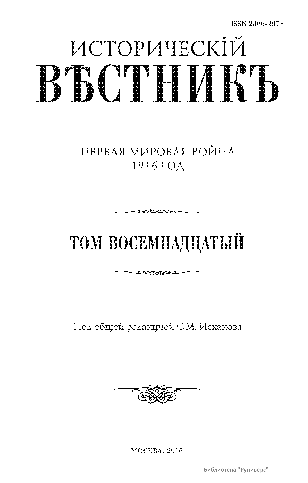 Исторический Вестник. Том восемнадцатый [165]. Первая Мировая война 1916 г.