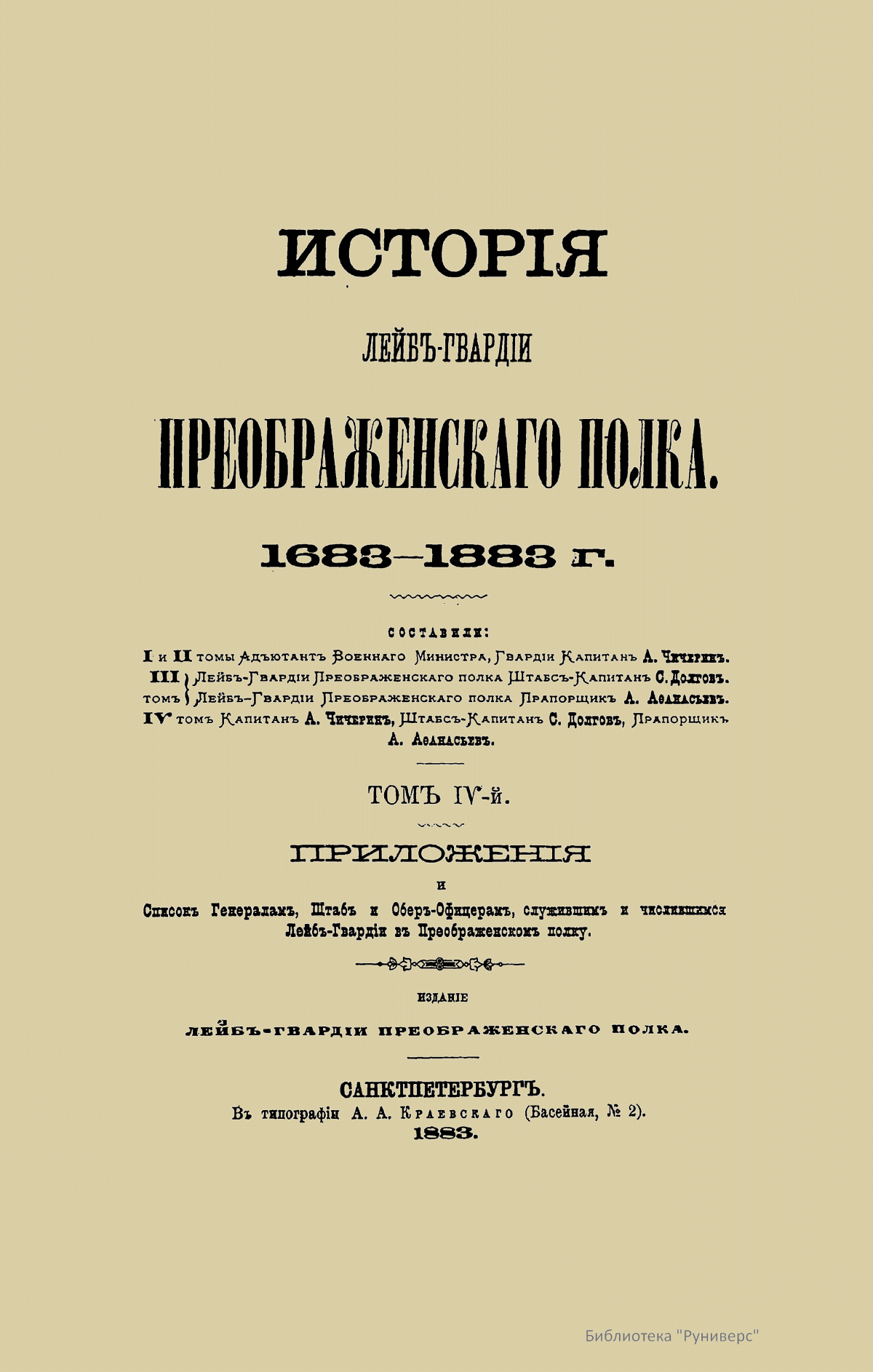 История Лейб-гвардии Преображенского полка. 1683-1883 г. Том IV-й. Приложения.