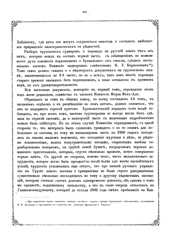Документы по истории Кавказа с X века по 1862 год издавались по инициативе русских властей под редакцией председателя Кавказской археографической комиссии Адольфа Петровича Берже (1828 – 1886). В двенадцати томах издания опубликованы разнообразные сведения по истории народов Кавказа: арабская хроника, фирманы, гуджары (жалованные грамоты) и другие акты, главным образом XIV — первой половины XIX века на грузинском, армянском, русском, арабском, персидском, татарском, турецком языках с русским переводом, а также родословные местных ханов и султанов. Каждый том включает документы за время правления того или иного кавказского наместника.