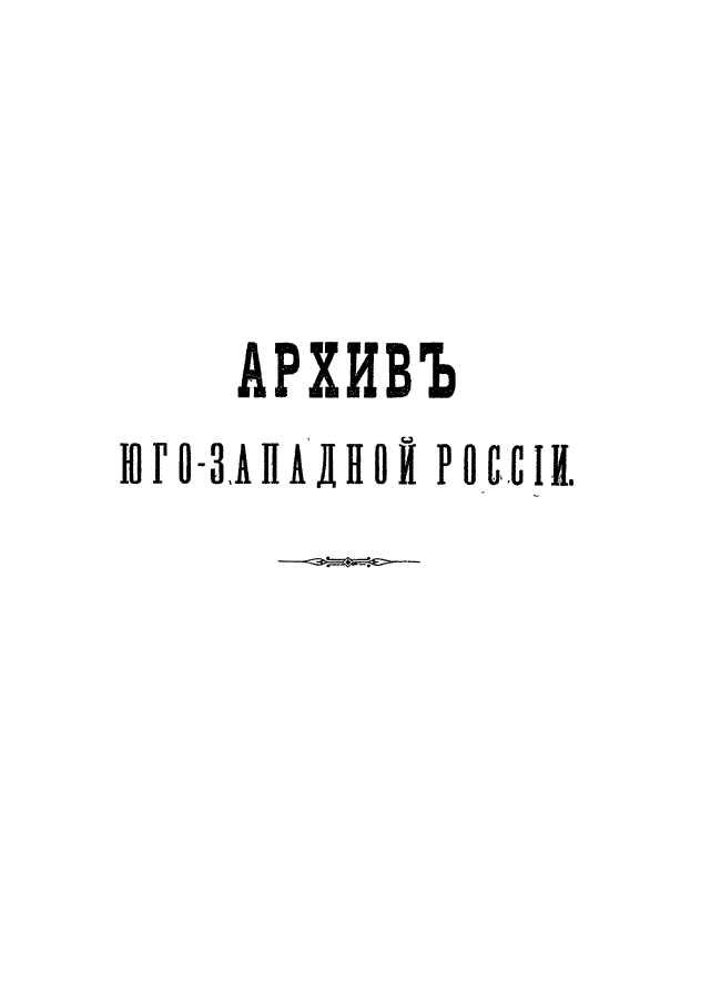 В серии «Архив Юго-Западной России» были напечатаны документы Киевского архива. Издание было предпринято Киевской археографической комиссией с 1859 по 1911 год. Всего вышло 34 тома.