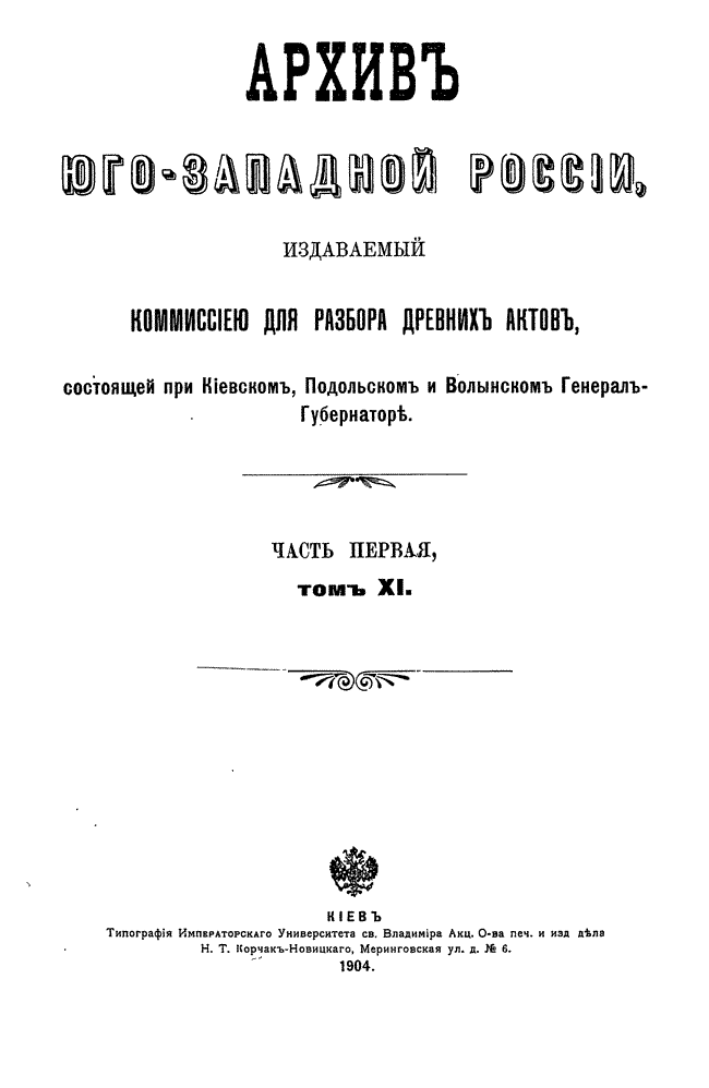Архив Юго-Западной России: Часть 1. Том XI.