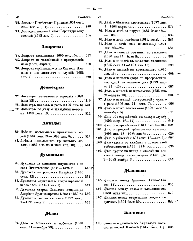 Это издание дополняет «Юридические акты» 1838 года некоторыми новыми формами старинных деловых бумаг – грамот, указов и отписок. Эти документы не имеют значения актов собственно исторических и касаются в основном частных дел, но их многочисленность и чрезвычайное разнообразие свидетельствуют о том, насколько важными они были в системе администрации Древней Руси. Кроме того, публикация актов, которые в свое время назывались «делами», даёт возможность наглядным образом изучать не только порядок старинного делопроизводства, но также личные убеждения и понятия о праве разных правительственных органов, их юридические приёмы и способ применения к делу современных требований законодательства и практики.