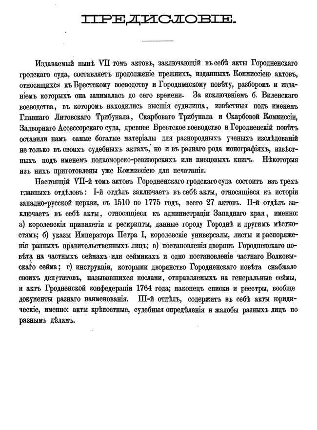 Обилие актов и документов Виленского центрального архива (19244 актовых книг) и желание исследовать прошлое Литвы, которая и в старину принадлежала России, вызвали после 1863 года учреждение особой комиссии для разбора в городе Вильне древних актов.