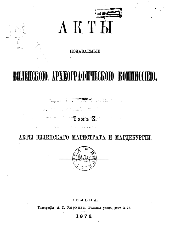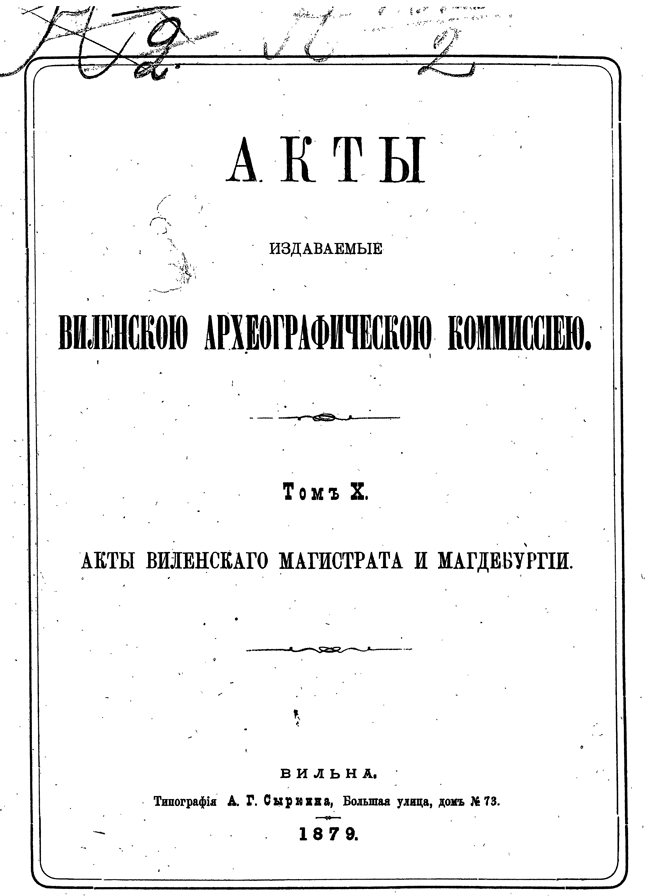 Обилие актов и документов Виленского центрального архива (19244 актовых книг) и желание исследовать прошлое Литвы, которая и в старину принадлежала России, вызвали после 1863 года учреждение особой комиссии для разбора в городе Вильне древних актов.