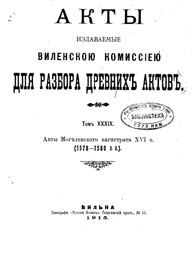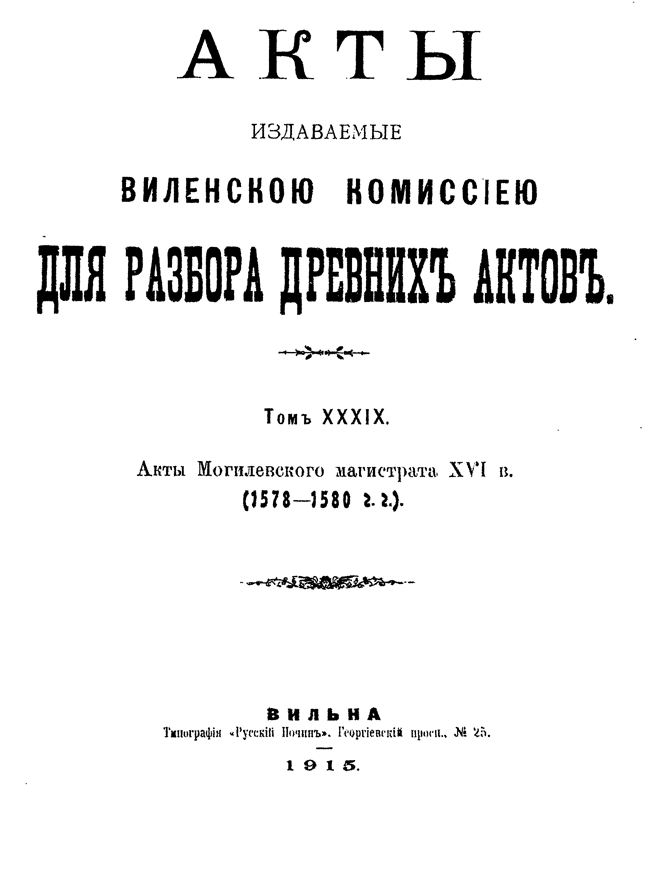 Акты Виленской археографической комиссии: Том XXXIX.