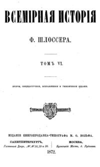 «Всемирная история» — знаменитый фундаментальный труд немецкого ученого Фридриха Кристофа Шлоссера представляет собой синтез его специальных исследований и университетских курсов. Описываемый период доведен до 1815 года.