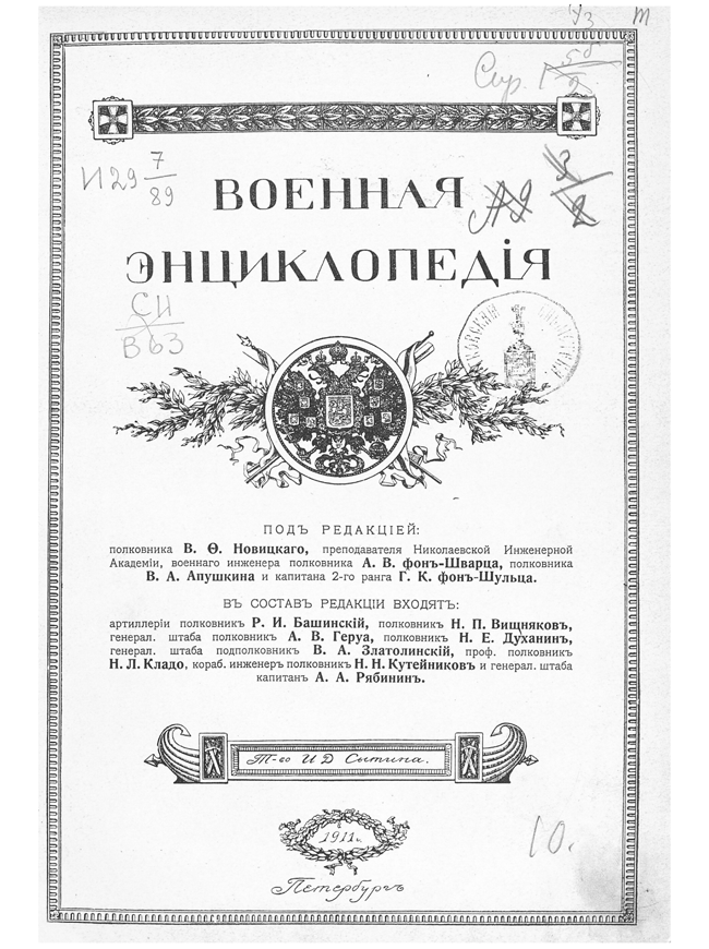 Благодаря издателю Ивану Дмитриевичу Сытину (1851-1934) энциклопедия по изяществу издания превосходила все подобные европейские издания того времени. В работе над энциклопедией принимали участие многие ведущие военные специалисты России, среди них особо выделяются генерал-майор А. Н. Апухтин, генерал-лейтенант М. М. Бородкин, генерал-майор И. И. Защук, капитан 2-го ранга П. И. Белавенец, полковник Н. М. Затворницкий, полковник П. Н. Краснов, генерал-лейтенанты А. П. Михневич, полковник А. Е. Снесарев, капитан В. К. Судравский и многие другие.