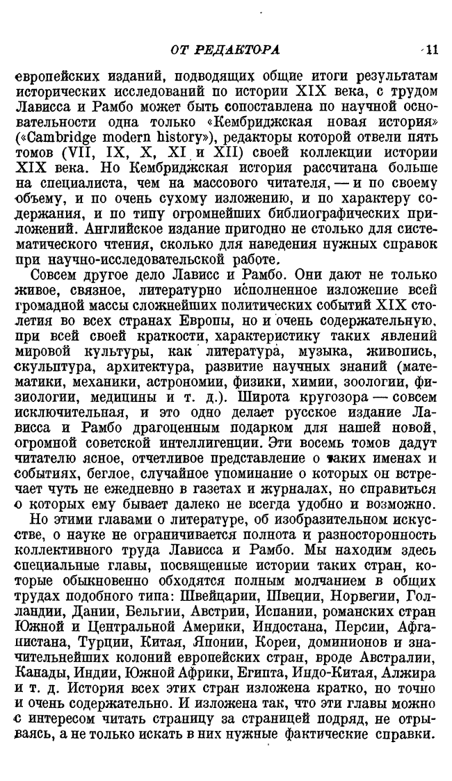 Специальные главы посвящены истории таких стран, как Швейцария, Швеция, Норвегия, Голландия, Дания, Бельгия, Австрия, Испания, романские страны Южной и Центральной Америки, Индостан, Персия, Афганистан, Турция, Китай, Япония, Корея, доминионы и колонии европейских стран, вроде Австралии, Канады, Индии, Южной Африки, Египта, Индокитая, Алжира и т. д. История всех этих стран изложена кратко, но точно и очень содержательно. Живой язык повествования, обилие приведенных фактов, подробный анализ истоков исторических событий отличает эту работу. Подробно прослеживается взаимосвязь и общие корни исторических событий в различных странах и их взаимное влияние.