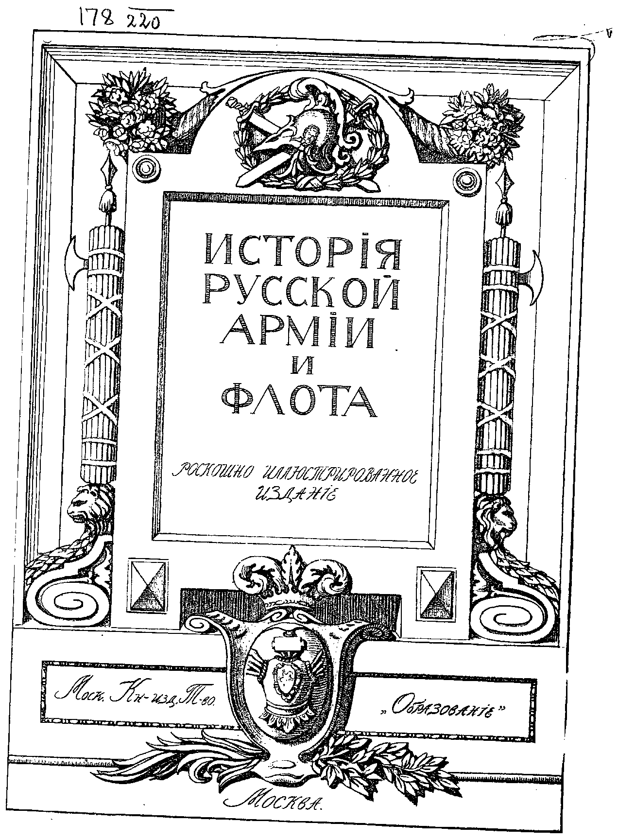 «История» рисует картину постепенного развития русского военного дела. С особым вниманием издание останавливается на наиболее выдающихся боевых эпизодах, интересуясь в тоже время организацией, бытом, вооружением и боевой подготовкой наших войск, в связи с политической жизнью государства. «История русской армии и флота» по своим размерам ( до 170 печатных листов) значительно превосходит прежние издания этого рода. Снабженная большим количеством иллюстраций и фотографий, она предназначалась для просвещения и русского офицерства, и русского общества.